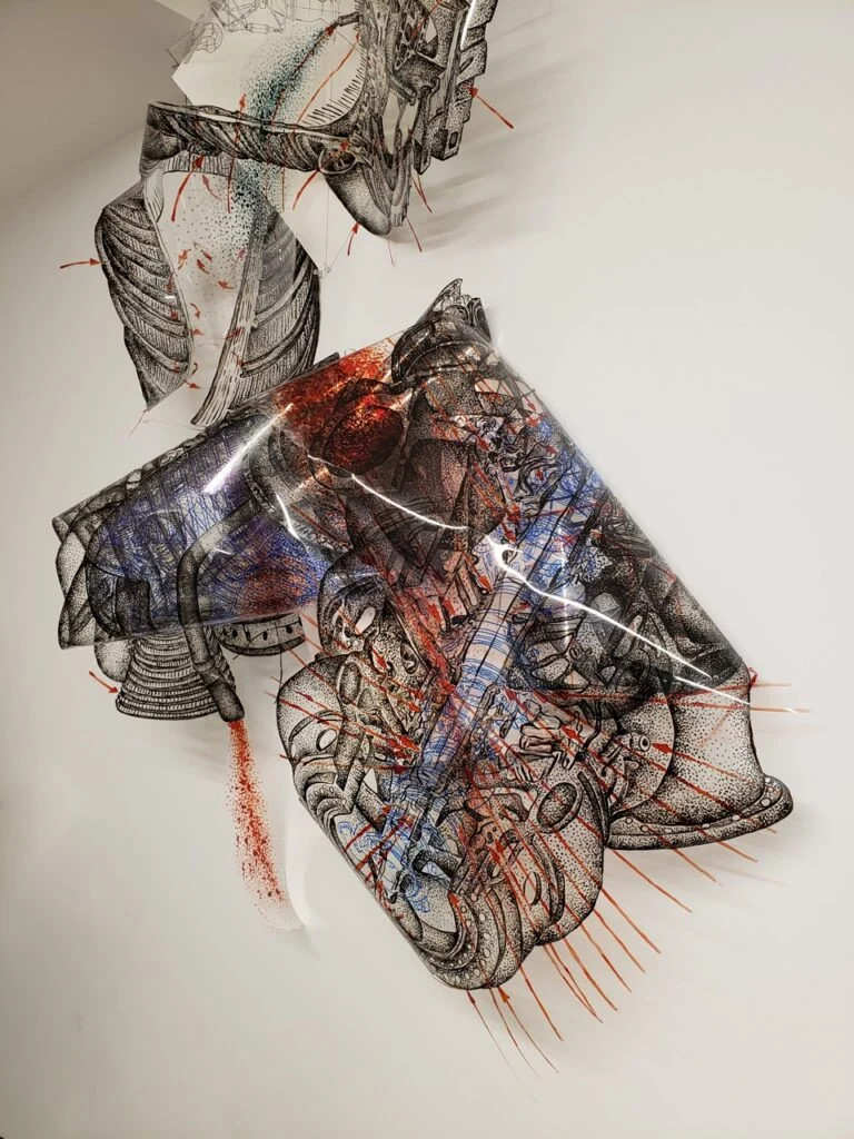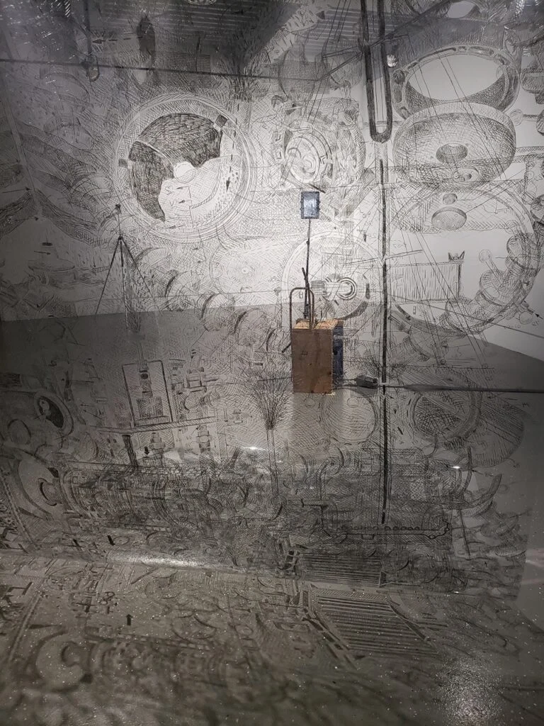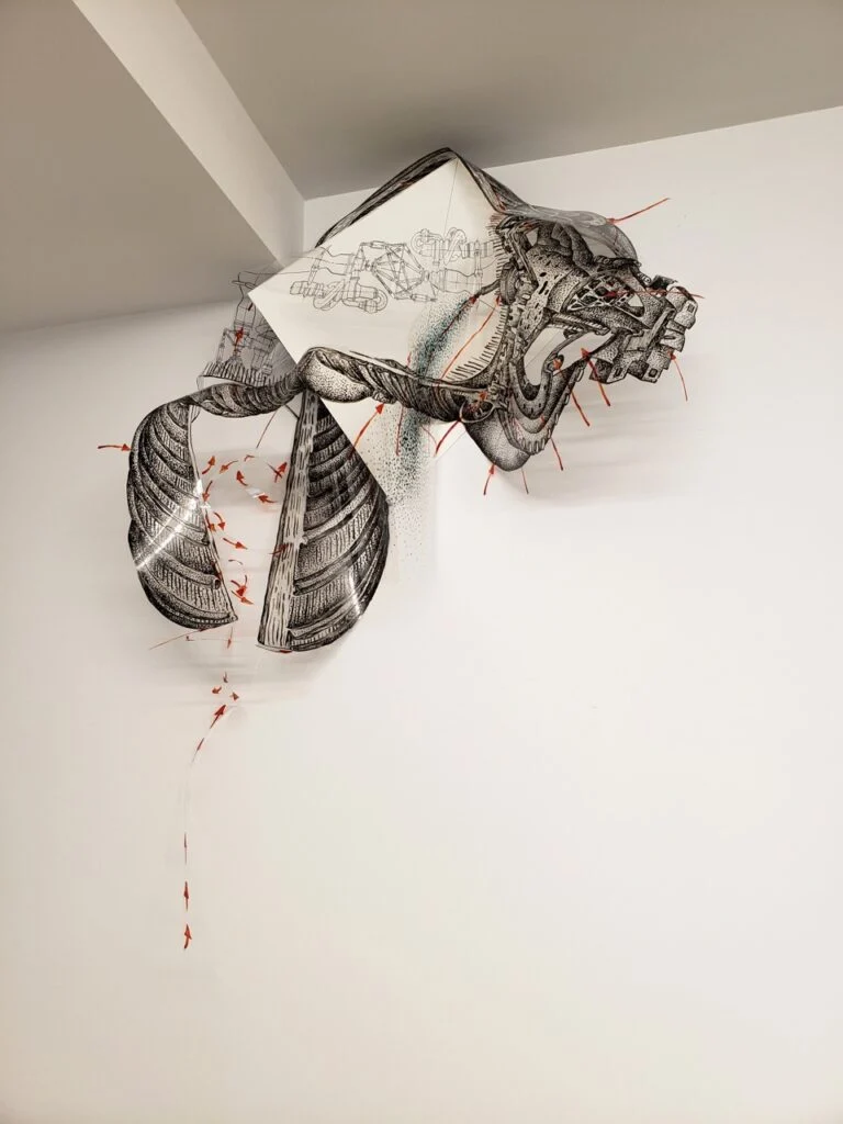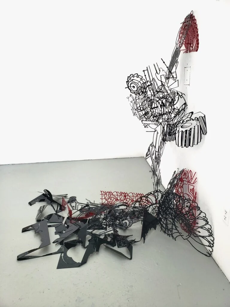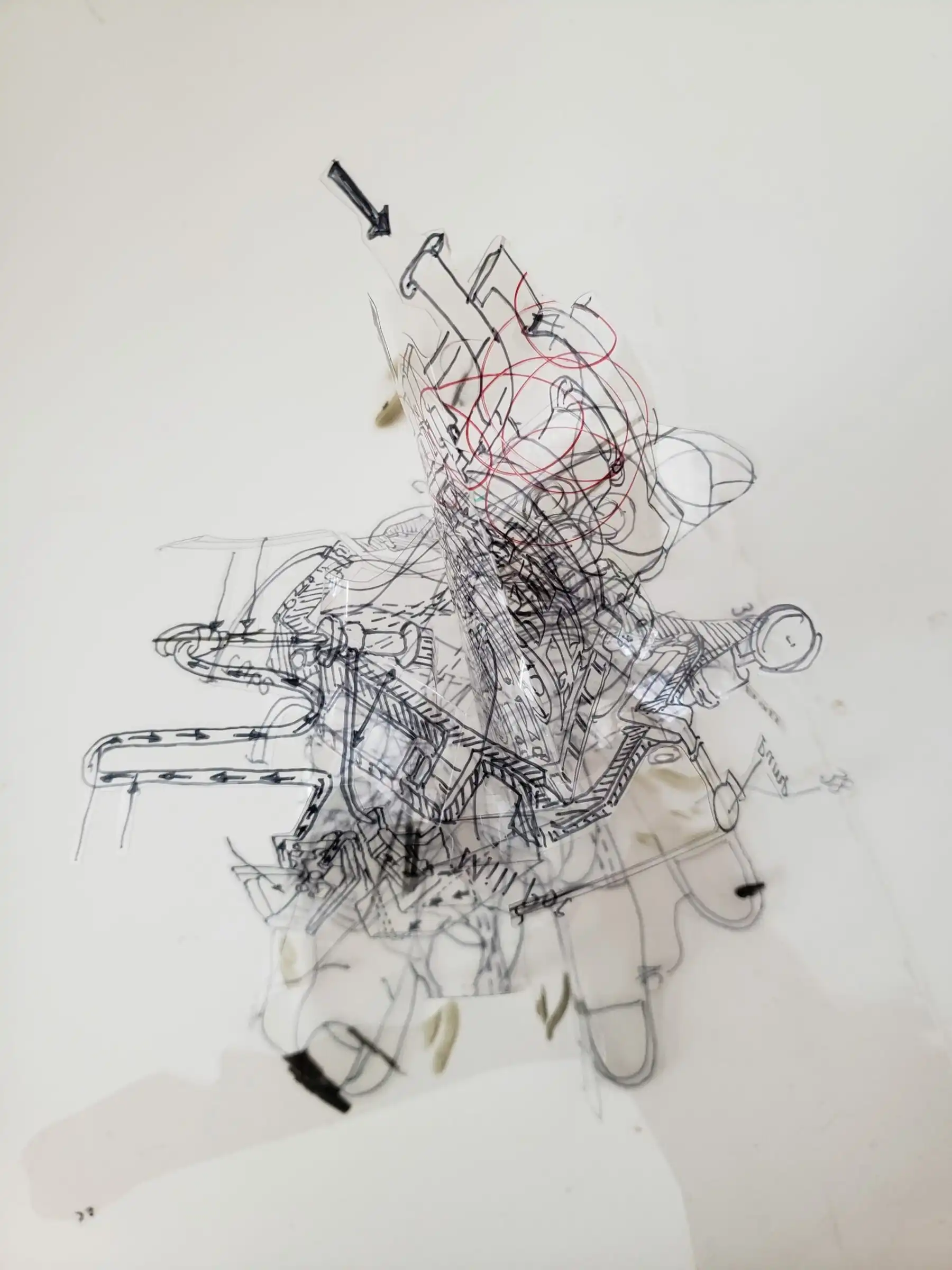 In my proposed project for this residency, my focus will be to explore the medium of video within the space, to understand video as a sculptural object. I’ll do that to expand on the architectural aspects of my current works. While I’ll study and research about works of artists like Sondra Perry and Lana Kurdy, I’ll also want to learn to work with video mapping applications or software. I would like to use this technology to bridge my 2D drawings into specific forms of digital animations that can be projected, in specific forms and shapes, on my DIY machines and other potential installations. My approach is to integrate and engage my 2D and 3D works together, and blur dividing borders between their forms. Through this exploration in form, I’ll dive into the concept of connecting, and simultaneity in space.