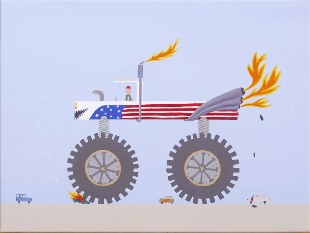 Through his paintings, videos, installations, and objects, he presents the vignettes and situations of existential ruminations and social satire that invite us to explore territories of thinking and emotion in relation to a wide range of psycho-social and political aspects related to contemporary living conditions. He is particularly interested in unpacking human and non-human existence, everyday life and social behavior, addressing its contradictions, paradoxes. His art practice draws aesthetically from the traditions of painting, comic, cartoon, and popular and amateur imagery to articulates a figurative ludic effort to find productive spaces of aesthetic fulfillment and critical engagement in these times of widespread cultural anxiety. This search is politically circumscribed by different modes of critique of late capitalism, western modernity, and the globalized neoliberal management of both subjectivities and of everyday life.