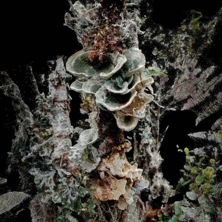The project will focus on portraying the diversity of three key actors in the forest. On the one hand, there are the trees who are in charge of trapping the water and regulating the temperature through their capture of carbon dioxide. Secondly, the importance of the flowers of these trees for their reproduction, which is also directly related to the fauna of both birds and insects that feed on them. And finally the fungi or lichens who are in charge of interconnecting and decomposing these trees when they die. In other words, the project will have 3 thematic and conceptual axes, the first related to the life and importance of the forest, the second to its sustainability and reproduction, and the third to the actors in charge of its decomposition. These scans were made in a series of trips to the Amazon in which multiple species of trees, lichens, flowers and plants were captured. Among these scans are various flowers such as “heliconias” and trees like a 500-year-old “ceiba”.