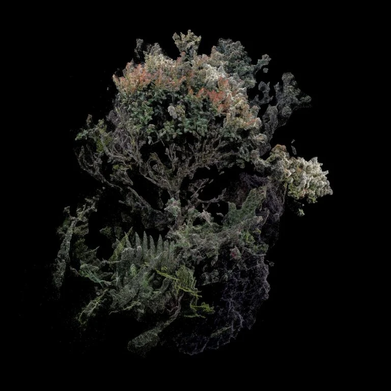 “The forest that sustains life” is a project that proposes a look at the Amazon through a series of 3D scans made with photogrammetry, which interpret and translate the landscape, generating a dialogue between the binary and the organic: it exposes a contemporary interpretation of nature. These measurements with light show the most detailed shapes of the trees, trace the geography of the rivers and are lost in the colors of the flora. Photogrammetry, a technique that has recently been used in the video game industry, is a process by means of which through a series of photographs you get a coordinate system of points in three dimensions that represent the position, dimensions and color of a physical object. This occurs after photographing the subject from different angles and as a result, a digital 3D model is obtained. It’s in this process where the works take on their greatest meaning, since the organic, natural forms face a process of mathematical abstraction in which math formulas draw nature. In other words, the data from the scans will be processed to generate a series of two-dimensional and video works that will lead the public to perceive the ecosystem in a new way.
