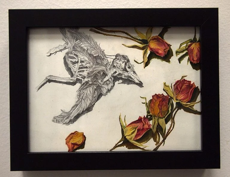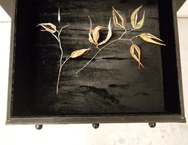 My art is based on the confluence of natural materials and found relics. Materiality is critical to my work and often the starting place for inspiration; newspaper clippings from letter exchanges with my grandmother, cheesecloth reminiscent of the curdling milk hanging from my mother’s bathroom sinks, snips of hair from poorly planned haircutting experiments. These become the foundation for intimately curated microcosms. From an early age, I spent a great deal of time in nature. Growing up in Rural Russia and then upstate New York, I was always rescuing creatures; birds with broken wings, squirrels that needed weaning, and bugs of every shape and size. Summers were punctuated with time outside, collecting plants and pods. These shapes instill nostalgia in me like old photographs do for others. By capturing these objects and transforming them through drawing or painting, they are given an opportunity to live on in a different form. Artist Ana Mendieta once said of her work: My art is grounded in the belief of one universal energy which runs through everything: from insect to man, from man to spectre, from spectre to plant from plant to galaxy… Similarly, the process of returning to an original state, the cycle of life, which connects us all, is of great inspiration to me. Working within drawing, painting, and sculpture I choose what medium feels most appropriate for any given project, often times combining multiple. I rarely set out with a concrete plan, and am interested in the places in my art that evolve through the process of working; where elements crack, drip, ooze, expose. The sense of interior and exterior is often present, both in the physical sense of elements that can be explored and illustrations of interiors such as the underlying biomechanics in living beings. I strive for a type of viewing experience that provides more than a unilateral exchange. By challenging the notion of size, by blurring the lines of what is real and what is drawn, I ask the viewer to be a participant in my world.