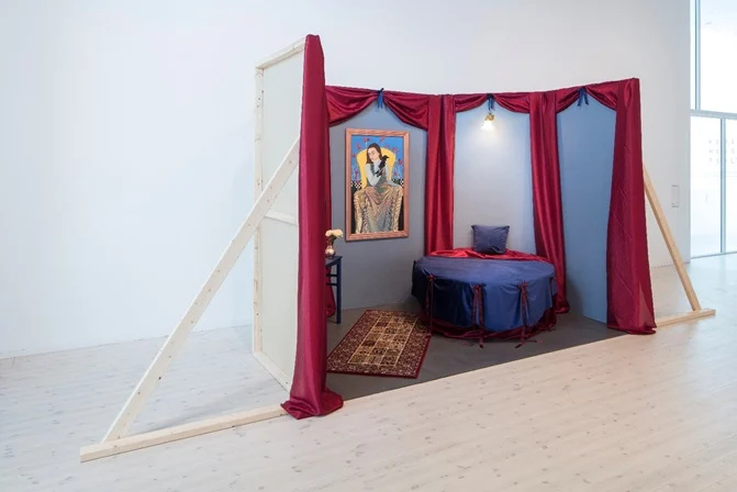 Annika Stridh is a multidisciplinary artist whose work blends painting, construction, and performance to create immersive installations. Her work aims to investigate the objectification and redistribution of collective nostalgia and the commodification of Americana kitsch.
