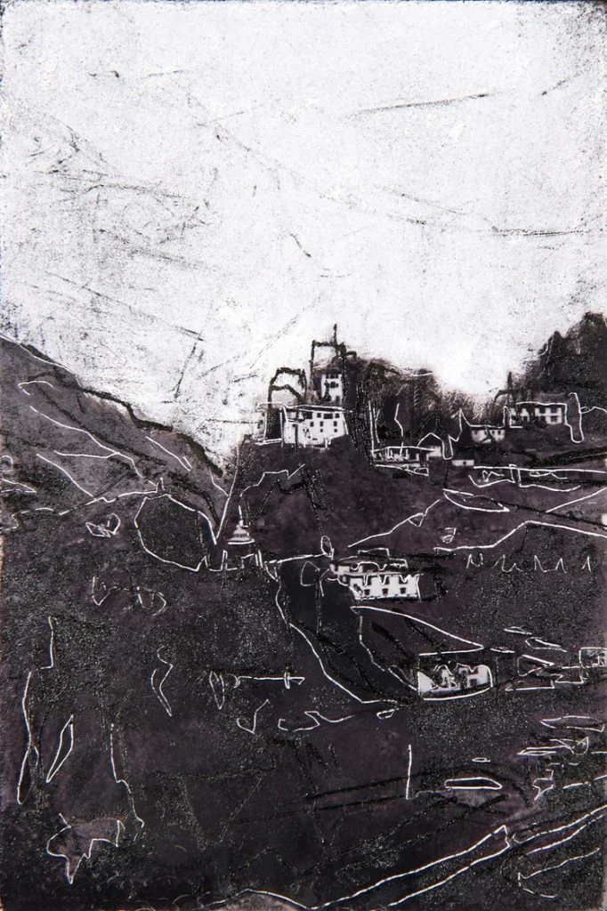 Arthur Laidlaw’s work emphasises the hubris of ‘Western’ viewers looking onto canonised landscapes. The experience of drawing and photographing ancient architecture in the Middle East, months before the Arab Spring, has profoundly shaped the way he sees the world. Laidlaw’s exhibition Razed: Syrian Ruins depicted Syria’s built environments, and the disparity in international responses to their destruction: from widespread condemnation of the demolition of classical ruins, to resignation in the face of regime bombardment of inhabited ancient cities. The resilient inhabitants of Ladakh, Nubra, and Spiti, in the Himalayas, are the focus of Laidlaw’s recent work, and their future is no more stable Syria’s eight years ago. Each place is caught in its own way – between the aggressions of India and Pakistan, the desperate plea for peace by the Kashmiri people, and the Chinese denial of Tibetan statehood. Laidlaw’s work tries to make sense of these conflicting forces, acknowledging the near-miraculous ability for each community to continue as normal, as though nothing threatens their way of life.