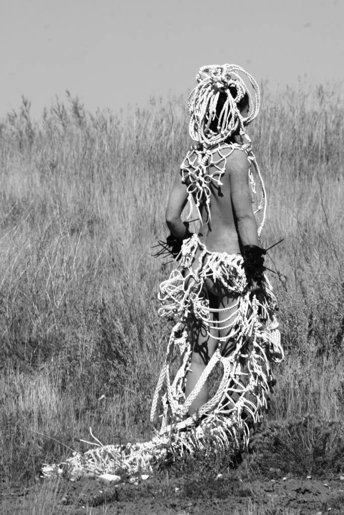 Curiosity about the human body and the spaces around it has consistently preoccupied Lloyd’s artistic imagination. Specifically, Lloyd have been asking questions about the bodies of women and how they relate to the architectures that direct their movement. How do material structures inside and outside bodies influence identity and agency? How do women find freedom now? As a visual artist, Lloyd asks these questions using fibres of all kinds with traditional and improvised textile methods resulting in costumes, performances and installations. In doing so, the physical activity of tying and untying knots demonstrates the theoretical activity of connection and distinction. That is to say, how we join with and separate from our environments.