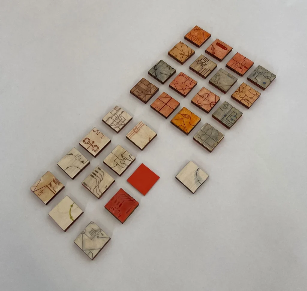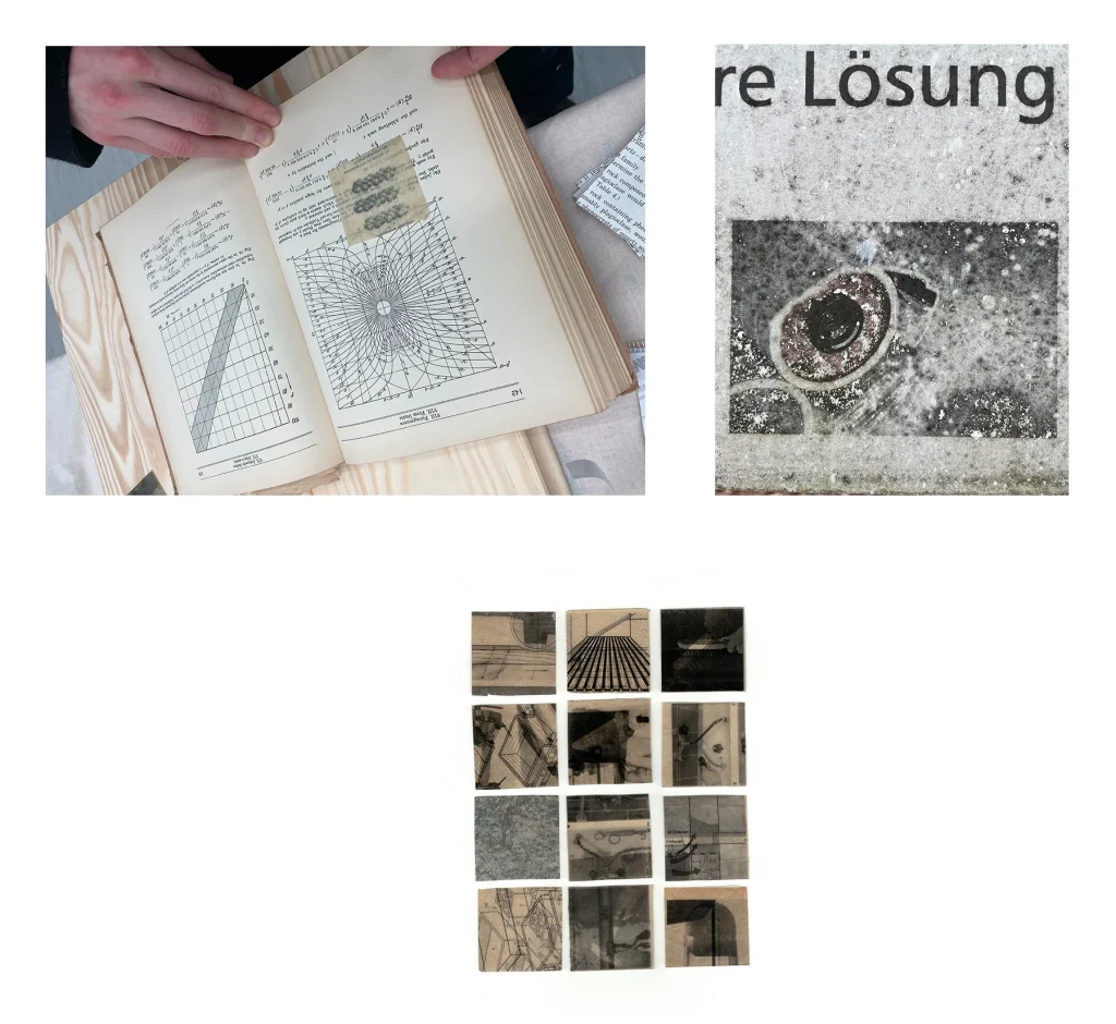 Our current project focuses on merging three found elements into new artifacts: graphic forms from infrastructure, paper from handwerk manuals, and errant collected marks from the street.