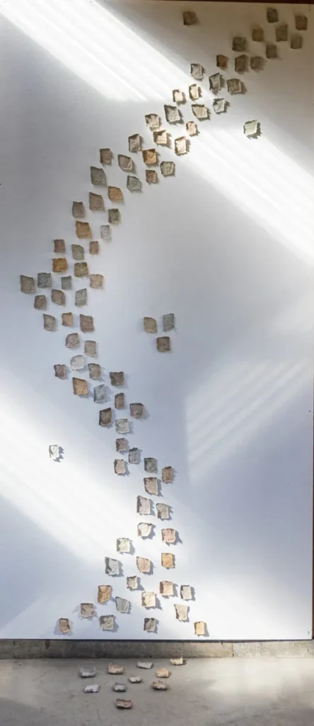 During the residency, I am exploring ways to bring together elements from the two places that I feel connected with. I am working with window-like forms I am building from plaster that recall memories of my childhood. By combining those plaster frames with natural materials I find in the hoods, I seek to explore the layered nature of my history and the ongoing dialogue between past and present.
