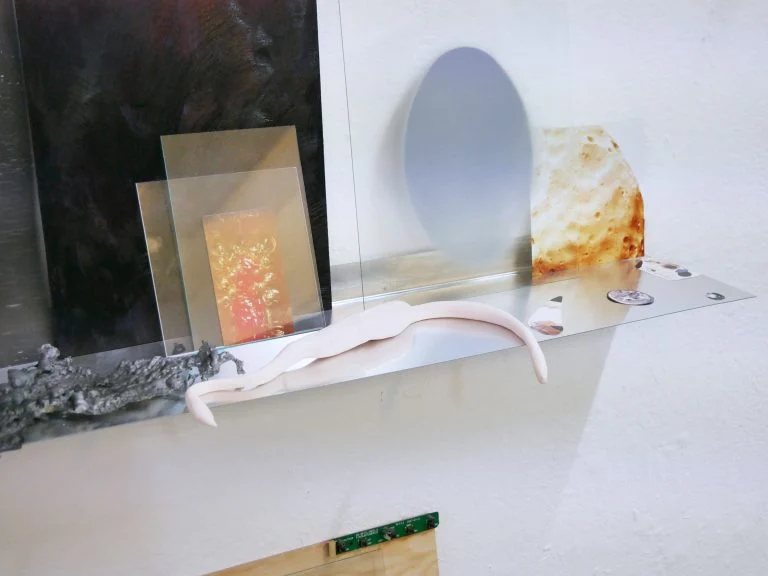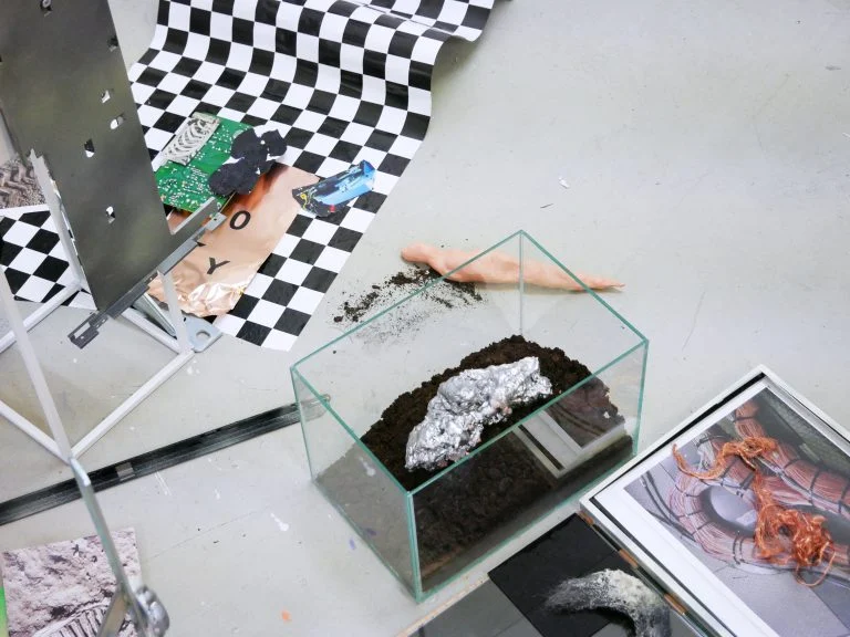I explore the framework of painting through sculptural intervention. Employing found objects and digital images woven into sprawling installations, anthropomorphic and surreal qualities emerge. Probing the relation between object and subject, my practice is centred on deconstructing layers of form, colour, shape and texture, agitating the materiality of surface.