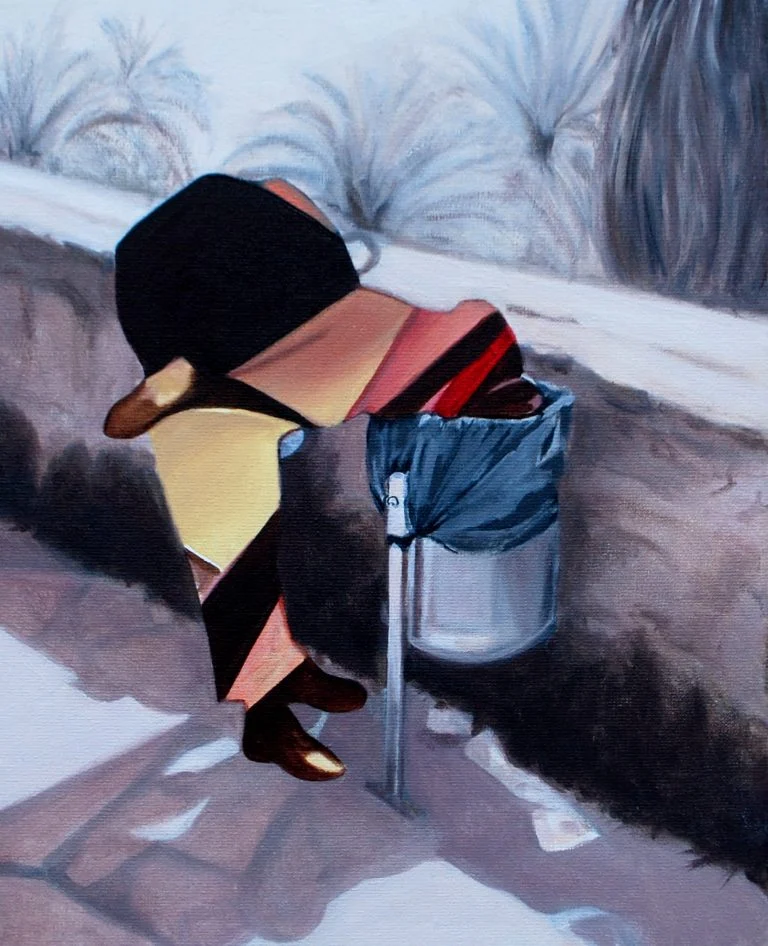 In my painting practice I investigate the impact of history and remembrance on an individual level. I use the medium of painting to build a new structure for the reflection of memory and the impact of images on the way memory is conceived. I look at how major historic events, such as the Second World War or nuclear bombing, affect society on the level of imagery; certain images stick with us through time and become icons in the collective memory.