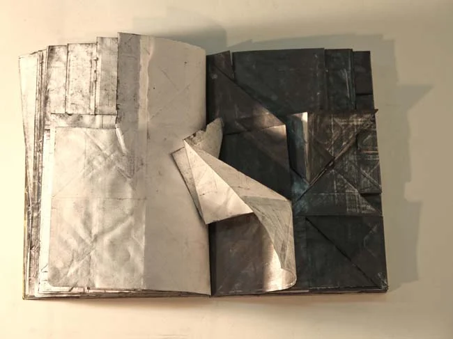 My interest in the book and its format has been present in my work for some time now. I like the idea that is compact, its size and all the characteristics which connect them to its easy way of transportation. They lead me to insert it in a nomadic context. Full of content and information, this object resists and has travelled with and through time. The book is passed from hand to hand – hand, body; touch which is directly connected to the book, starting with those who write it to the ones who flip through its pages. One after another. The hand is shaping it (new forms appear). While flipping through the pages we notice that there is a certain order, a matrix which is “inevitable” since we are dealing with a book. These ir always one point that is there, present. Stapled, woven, glued. Its set, steady. Its the point which is least susceptible to be transformed. Its that same point that unifies the whole, that gathers the ideas, the drawings, defines order. The order. Keeping it together enabling all the rest. Getting rid of that point, will break everything up. Making it loose; fragile. Its dimension, together with its meaning is lost to go win one other. We will now be talking about a new object. The sheets loose themselves, they occupy a new space. Do they become autonomous? Loose strength? In this residency, I am willing to work every single page individually of a book with 320 sheets, through de folding and tearing using my hands and only adding up an external element – the graphite. The graphite brings different meanings to the paper. A solidness that is only apparent. New adjectives and possibilities of interpretations. It sends us to something far from the book. Of its flipping. It brings a visual weight to a very fragile thing which can be easily destroyed. Once all the 320 drawings are complete, my wish is to disassemble the book. Take the drawings off this format and sort them out in a new way, in order to present them in a vertical space. Issues about the space that these “new” drawings, fixed, will occupy, and its relation with the spectator will provide new challenges both conceptually and practically (issues on installation and presentation). I believe that being in a specific space with limited time as in this residence program in Berlin, where new topics for debate and confrontation are available and current, together with more space and interaction, places of discussion and of exchange, will enable me to go in depth with this project and materialize it in the best way.