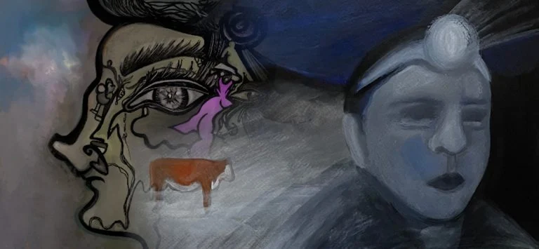 Duaa Bilbeisi and Shannon Castor are a collaborative team that work with themes of fear, anxiety, healing and the release of emotions. Prompted by text, they choose a word for each collaboration and respond, pulling from their gut. With color slapping the page, they purge trapped energy, raw in its most immediate form. Duaa’s strong bold lines, Shannon’s interior landscapes, slip and twirl around each other. A psyche feathering melding of minds, they heal like clasping hands. They reveal. They go one by one. Every emotion unearthed and painted. Excavated from the soul. A story is told.