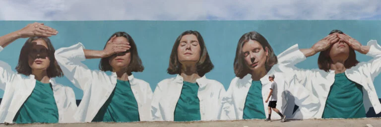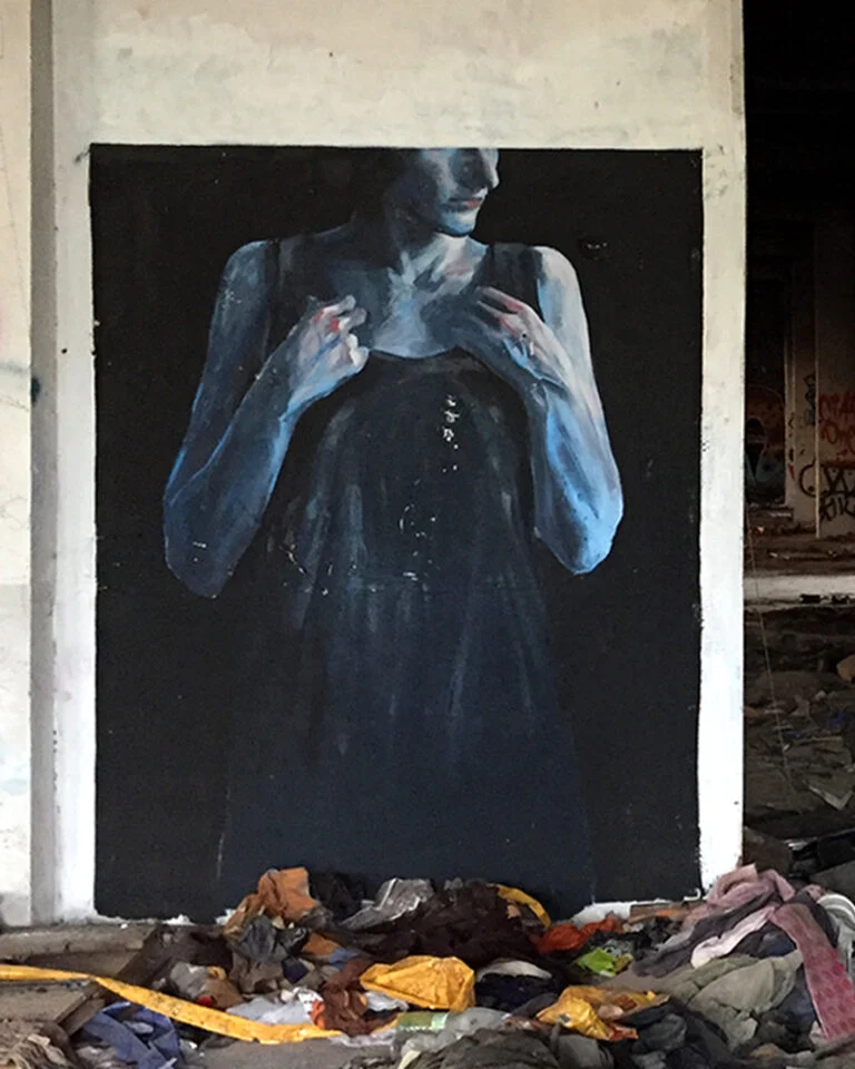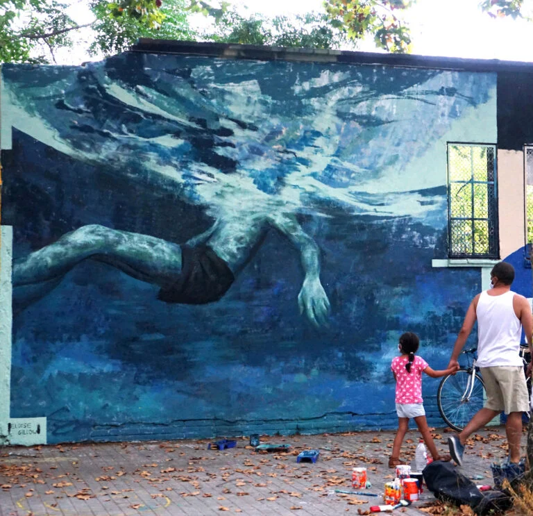 Eloise Gillow is a painter and muralist, working both on a small scale in the studio and on large-scale murals in the public space. She seeks to create imagery that opens up to multiple interpretations, that makes the viewer stop and think and feel.