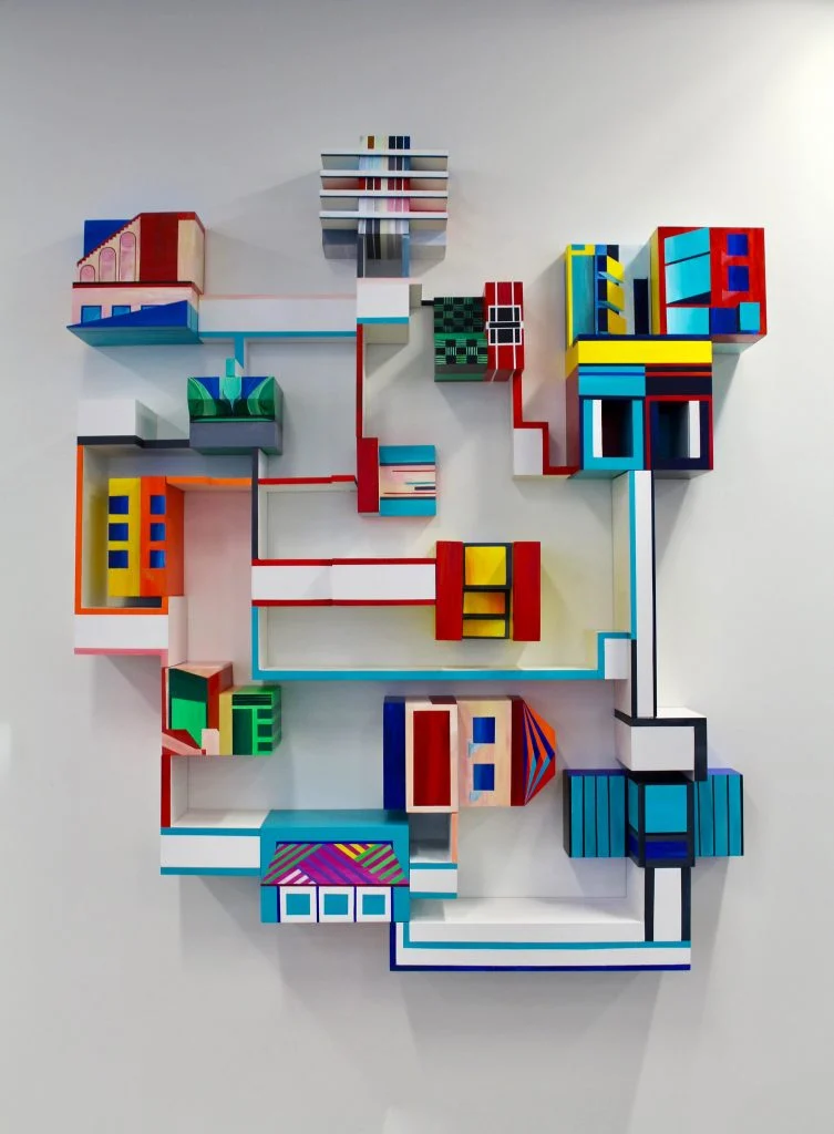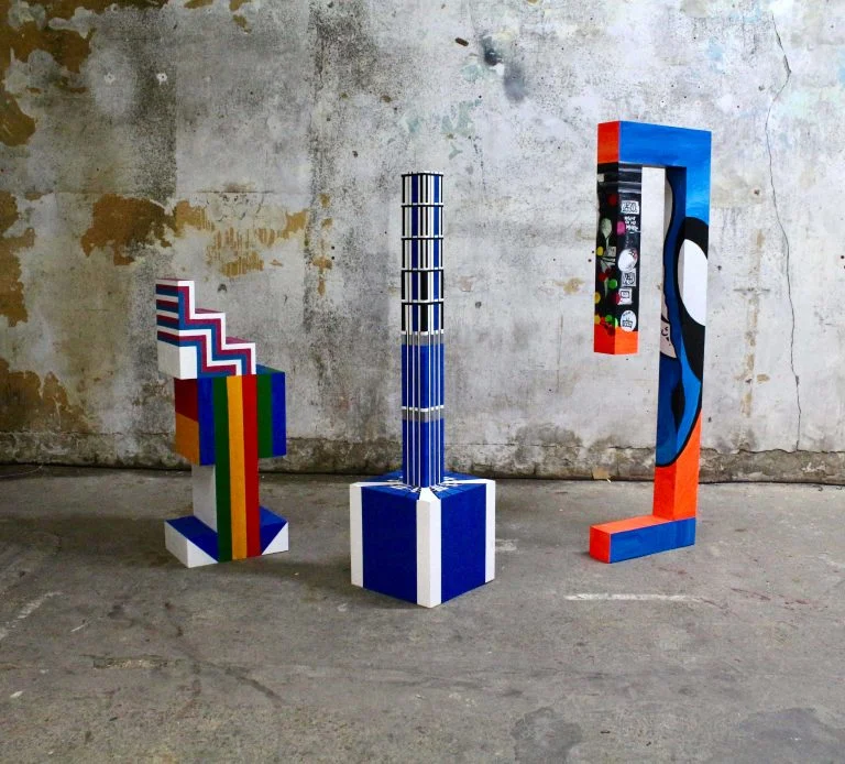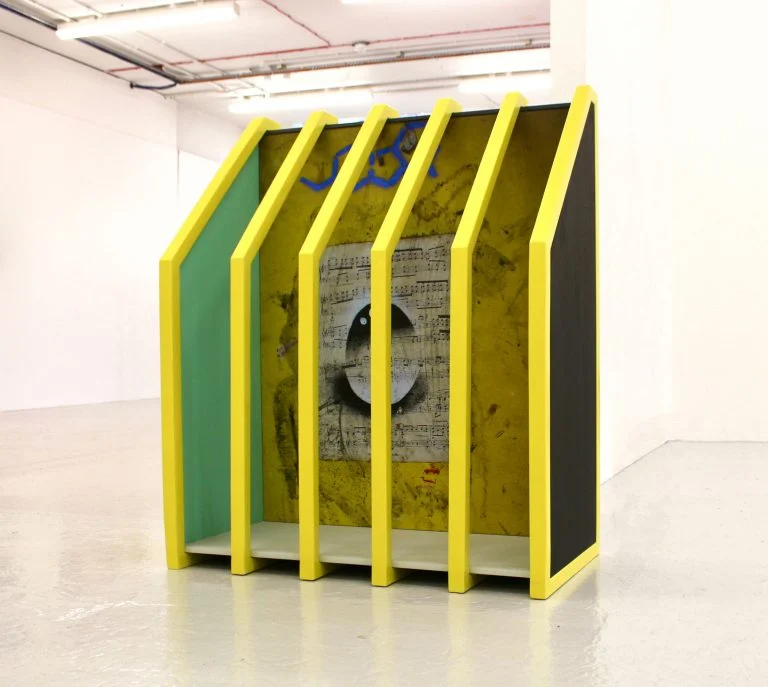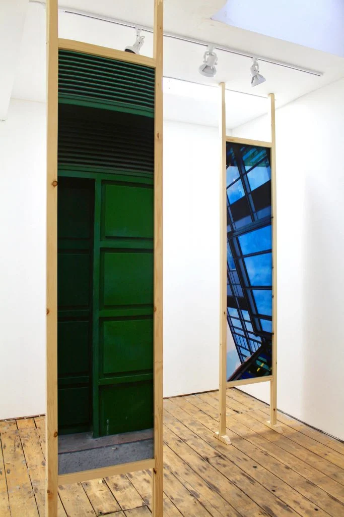 I am intrigued by our human desire to categorise everything in terms of form and function. This instinct is challenged through my work as it sits somewhere between painting, sculpture, object and architecture. Materiality is therefore a fundamental aspect, as the viewer intuitively attempts to define it in terms of medium. I select particular materials in order to re-create a sense of place and portray the key characteristics of the area they are representing. This is illustrated in ‘Hackney, I love you. I lost you.’, which was inspired by a doorway I photographed in Hackney. I printed my photograph of the doorway’s graffiti onto canvas and built this into an architectural structure. Due to the texture of the material, the print appears as a realistic painting of the site, as well as a re-creation. The painterly effect aims to evoke an impression of Hackney’s creative community and culture. Colour is a vital component of my work and is significant within the architecture that I choose to photograph. Certain areas of the city embrace bright colours and welcome street art. In contrast, clear white buildings with blue glass reflect capitalist progress, with an attempt to appear as professional institutions. Colour has the ability to encourage conceptual interpretation and assert visual impact