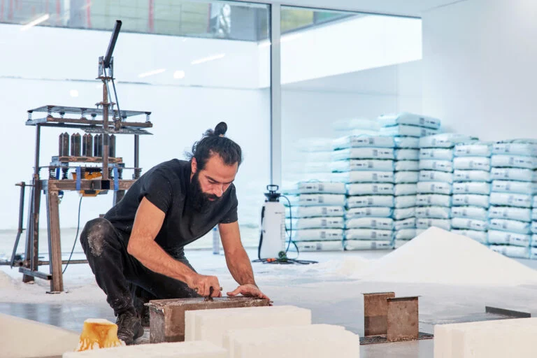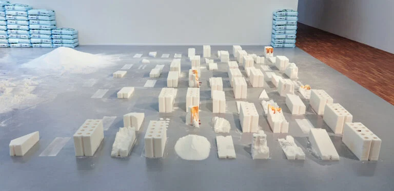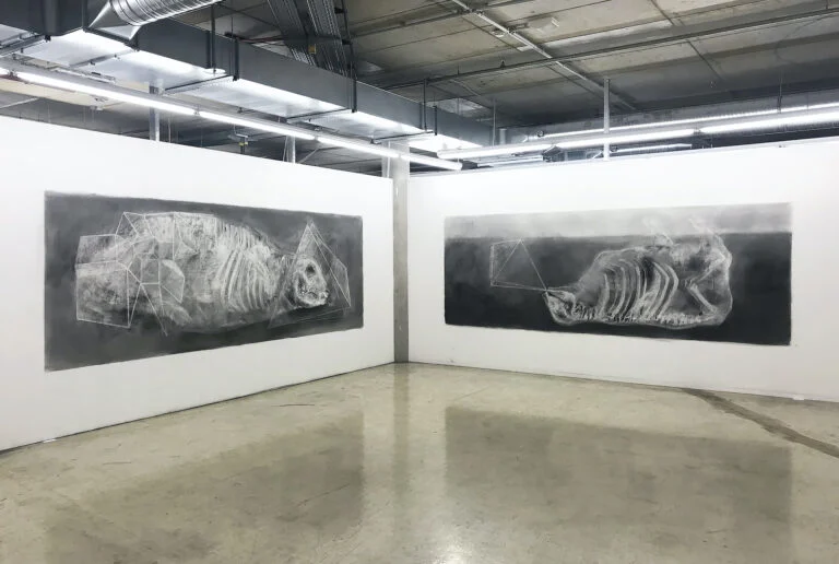 Fadi al-Hamwi (b.1986, Damascus) lives and works in Berlin. He studied oil and mural painting at the Damascus Academy of Fine Arts (2010-2006). Al-Hamwi concerns himself with lending physical shape to the human experience of war, His practice began investigating the latent violence in societal constructs and evolved as actual violence began to take place around him in Damascus in 2011. He explores the relationship between dormant and actualised expressions of violence and desire, as well as the dialogue between construction and destruction and revealing a deeply personal/social process of reckoning.