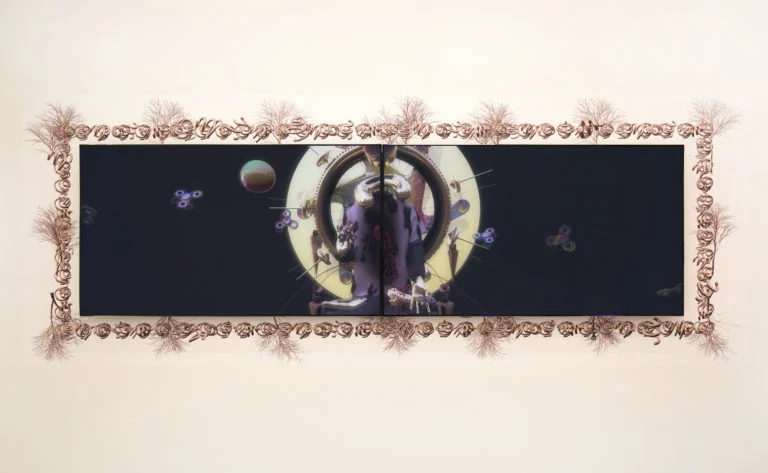 As a creator who is a digital native, my work grapples with the obscure borders between the real physical world and “fake” virtual spaces. In this sense, I am a nomad – traversing both. No matter what landscapes I travel, my sojourns are always accompanied by the idea of confronting hyperreality. In my daily life, I immerse in digital spaces, virtuality, technologies, and the questioning of the notion of “home”. As a result, my works are filled with absurdity and surrealism – they are a constant investigation of both the real and the fake – and how society attempts to navigate and understand these territories. Drawing inspiration from the locations I travel to, contemporary iconographies, and inspiring proverbs and delirium found in old books, my works are an amalgamation of the various landscapes I traverse.