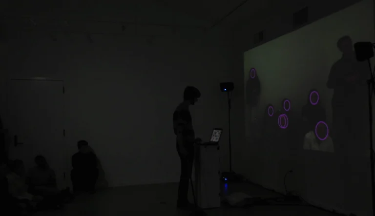 The goal of the residency would be to expand and refine each element of the experience so as to incorporate a wider range of interactions in order to emphasize the goals of the piece. I want to utilize the full capabilities of the smartphone. For example, using the power of streaming technologies to split a voice across not only the frequency spectrum, but spatially across a mass of smartphone speakers in real-time. Moves like this would highlight the macro/micro relationships inherent in the work as well as the macro/micro nature of our dispersed virtual identities as posthumans. I also want to expand the audience’s repertoire of actions and shift the user between cooperative and competitive modes of interaction throughout. Some examples of this would be breaking participants into various teams at points or having a shared experience between two people, but on one device. This would require extensive experimentation. As of yet, these elements are absent or not central to the work.