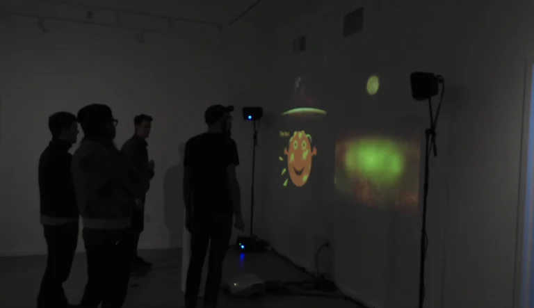 - //trnslation Interactive two-channel installation. _.world show at Slide Space 123, Mills College, April 2017.