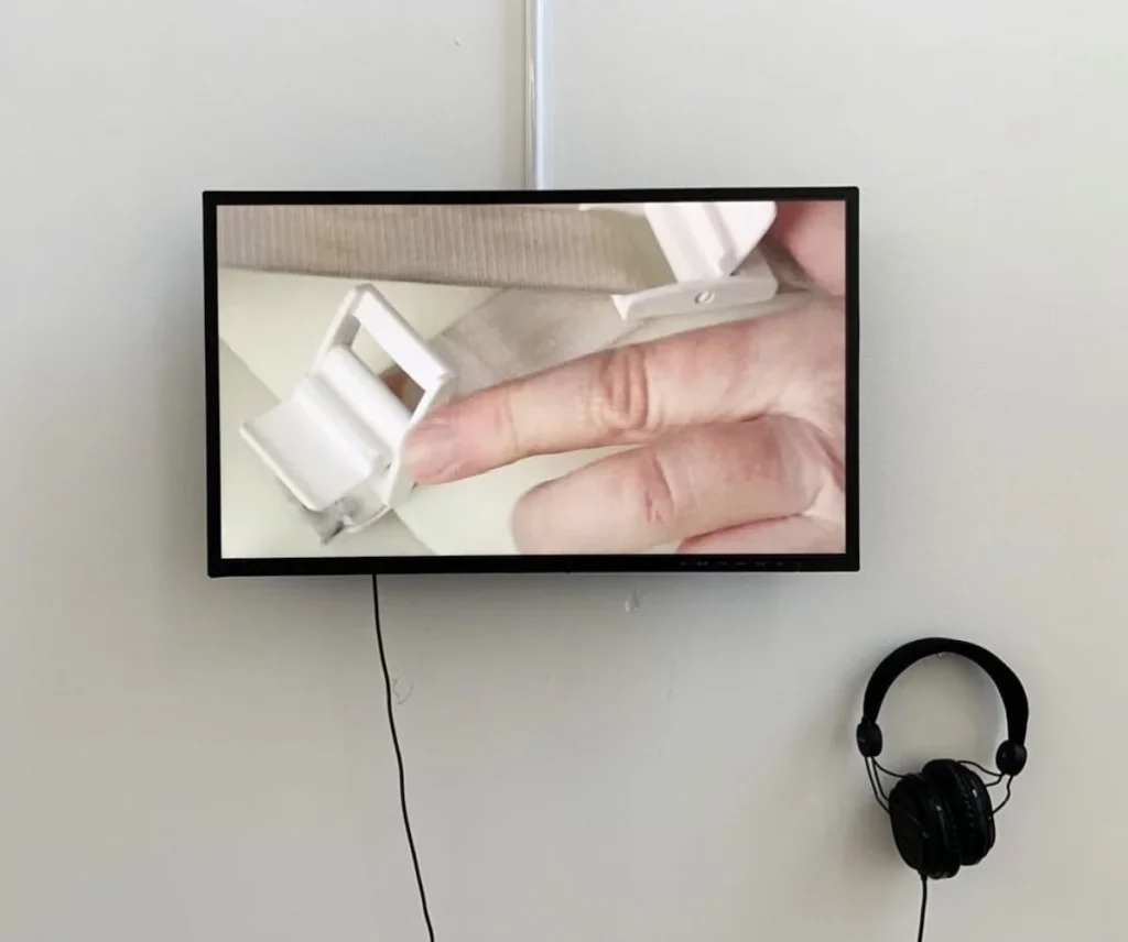 Band consists of three video works that function together to explore questions surrounding power relations and dependency in a parent-child relationship with a focus on the relationship between mother and daughter. The three works use physical objects and the autobiographical as a way of making power visible as an involuntary activity and something that is moved and replaced over time. Band reveals an ambivalence and an interaction between the attentive and the violent.