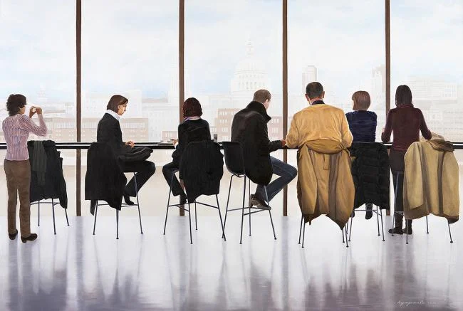 I have a story which has lost its story. It has a subject who is missing a predicate and has no object. The story is only the subject: I, you, we, or they. This is a story of a subject with no body. Fragments of this story come to me intermittently. Whatever triggers these fragments to arrive from the past through a tunnel of oblivion makes me hungry. Cold winds. Clouds overhead. Planes passing overhead. I remember an old man who I cannot forgive. This was surely a story, but none will ever remember it, though I was the protagonist of the story—a story with characters and plot—in which memories disappeared. For this reason, the story without a story is a formless energy mass veiled in loose fabric— a silhouette, more form than the mass beneath it. I start to play with it. It is an external without an internal. It is a result without process. It is probability created by contradictions. My work therefore begins with facing a time which was once my past. It is to see time pulled out and thrown in front of me. It is to gaze at a time which was once my present. It is to recall a time which has now become the past, external to me. So the act of painting becomes one of repainting of memories from the past, in the present, dependent on the future. My work is a journey in search of lost time. It is a journey in search of lost feelings from previous presents. It is an attempt to get into the old present through memories out of time. It is bringing old feelings back to life in the present. Therefore my works are stories about the times that I have passed through, made up of my experiences and memories. My works often depict people and modern cities, and, sometimes nature. They furthermore explore the various relationships between people, time and nature. At other times, the stories and visions come from the spaces between objects and people, in other words, different ‘scapes’, such as landscapes, urbanscapes, even mindscapes.