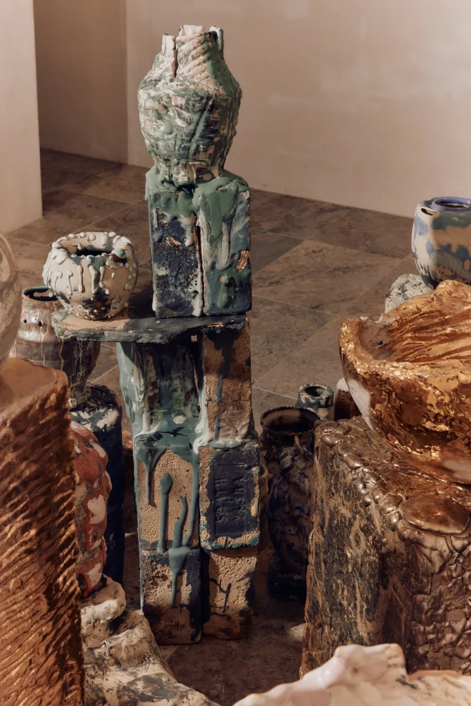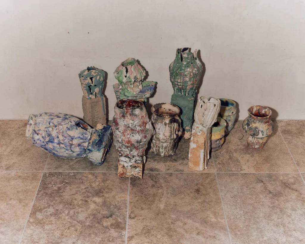 My personal experience is that my usual studio at home is so well equipped. I have everything in my space: a kiln, all my materials, space, and also a place to do messy work because the way I work is messy. That’s how I achieve the abstracted or grotesque forms I play with—because I have room to be chaotic.