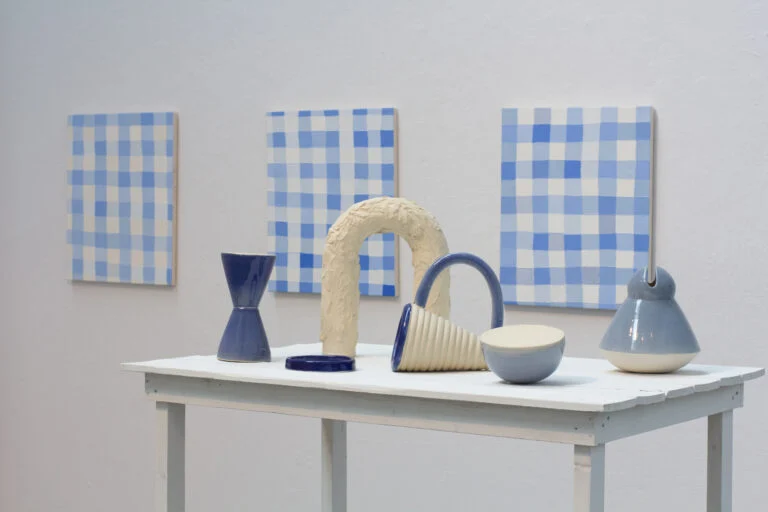 Kate Metten (born 1991, Vancouver, Canada) is an interdisciplinary artist whose material investigations into oil painting and ceramics oscillate between abstraction and figuration. Her work borrows from the entirety of painting’s history and that of ceramic anthropology. This methodology allows a flexibility to address painterly concerns with clay, research into colour theory, visual perception and the still life, while also reflecting on Modernist philosophies of the Bauhaus, the unmaking of craft and material hierarchies. She is deeply concerned with phenomenology and the physicality of form. The internal logic of her artwork is determined by intuitive construction and response to material; Images and objects arise out of multi-layers of decision making to develop forms that are at once recognizable yet unfamiliar. The indexical quality of both painting and ceramic render dynamic impressions of mass and surface that preserve evidence of the hand and mind in motion. Metten’s preoccupation with the mechanics of looking, the psychological play of optical illusions, and our brain’s response to reductionist imagery confronts the viewer with the conditioning of their own perception.