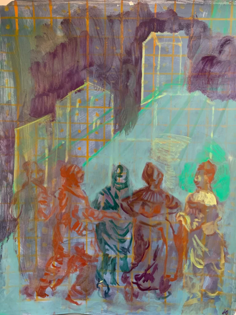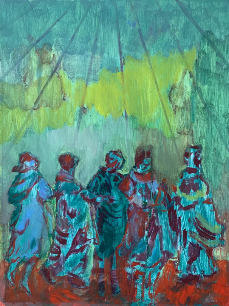 For me, 2022 was the year in which I looked for inspiration outside. In June 2022 I did a painting performance in the port of Hamburg and portrayed people visiting a small port snack bar. Another project in 2022 was a portrait project where I portrayed female musicians who deal with counterculture. In the online residency 2023 I would like to focus in the development of my painting and visualization of inner worlds in an open-ended and process-oriented manner.