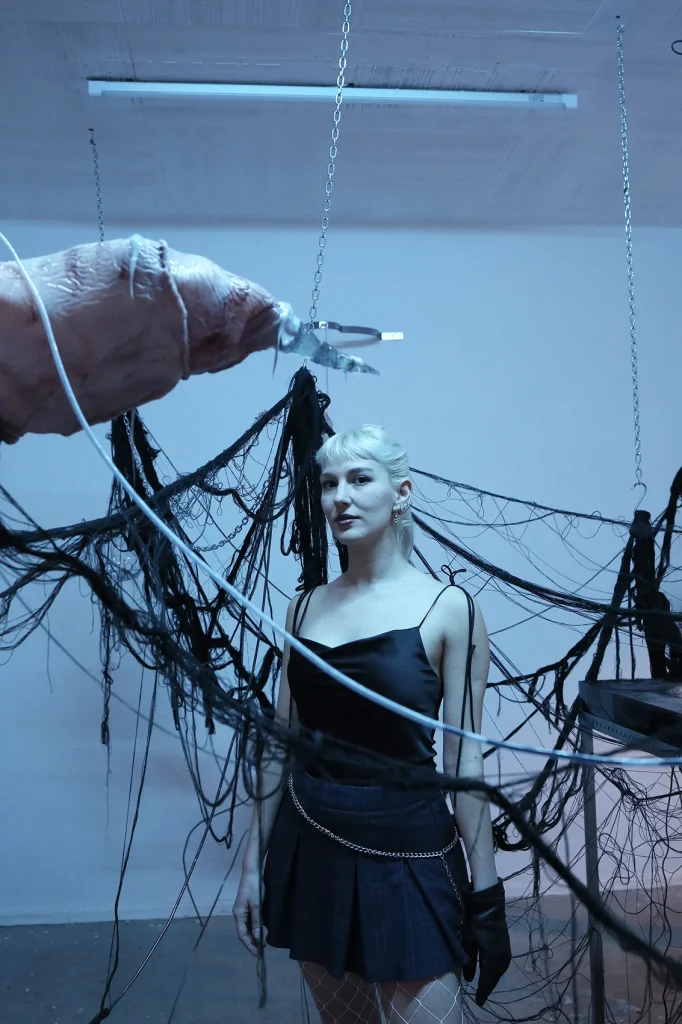 She creates hybrid organisms where the border between gender, sexuality, technology and nature are not defined, as well as notions around the sublimation of imposed structures.