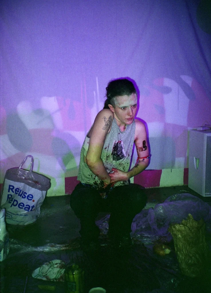 Described in ancient texts as a “dweller in waste places,” Lilit is a being who thrives in desolation. In our reimagining, Lilit’s immortal presence is (re)animated across space and time: Ancient Demonexx. Modern day Diva. Bringer of judgement who wields a flaming sword. In these many forms they navigate a string of waste places: clawing for change in the acid light of an U-Bahn platform, singing Polish tango in a 30s cabaret club, slumping over a table as their landlady sweeps and entrails thaw in the icebox, conducting self-surgery in the back of a scab-red Nissan Micra.