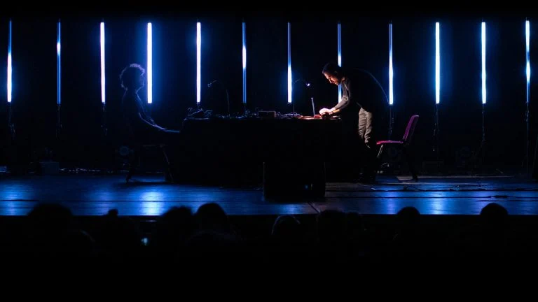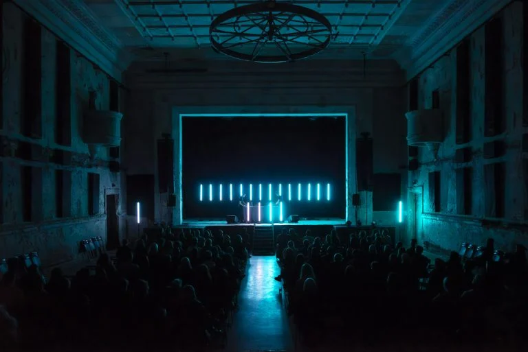Through the use of sound and light, the artist shapes space, manipulating the perception of elements and transforming objects into bodies and vice versa.