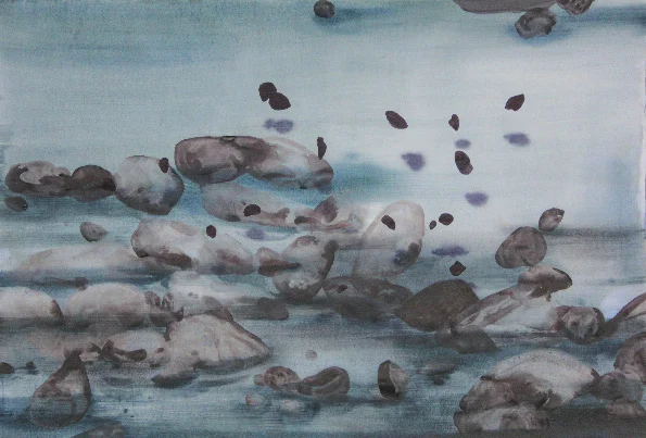 Lately I focused my research on landscape and with an obsession for stones. Drawing, video, sculpture, installation, I never stopped to search how to reuse stones I collected in Berlin when I was visiting city. I questioned how can we represent landscape and with what, like stones. I joined landscape research with complex of balance that I explored. In physic there is three kind of balance : stable, instable and indifferent. For example after disturbance, an object in stable balance always return to his original position, an object in instable balance will always change of position and an object in indifferent balance can’t be disturbing by anything. I questioned it to structure my works. Dealing with different types of balance in the same space has been an important part of my research. There is hesitation of what is really what it is. Some elements seem to be in a perfect balance but sometimes no, sometimes yes and in contrast with elements which can be disturbing by the first thing able to. I see a parallel between different types of balance and different states of being. I remember three years ago I was wondering myself what represents my state of mind during creation. It is thanks to this question I found levitation was the best phenomenon to illustrate my state of mind/balance, a really turbulent levitation that I included in my landscapes with stones. Before to focus my research on this subjects, I was more into male figure from portrait to body. There is something which didn’t change this is my graphic approach about blur and transparency. My project for residency is to keep exploring landscape and in directions I explained. This research will be without stones but I want to question how to include human figure in space and how it can deal with.