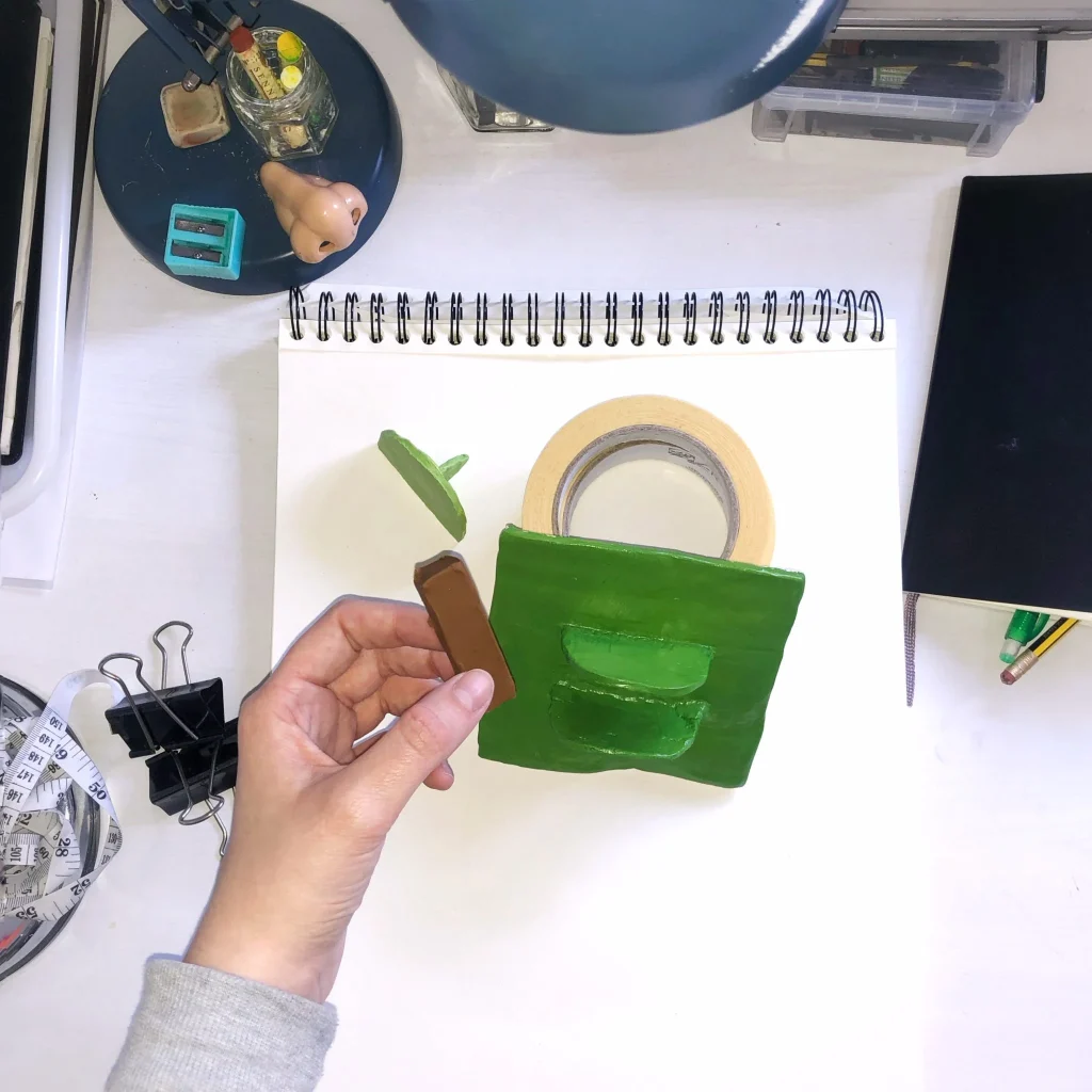 Models, yes! I use mock-ups that I build with plasticine or air-drying clay. These models are useful when I want to represent in a painting a specific object or element that I have never seen before in reality. So I create a model and paint it with the corresponding colour to observe how it affects the light and what shadows it acquires.
