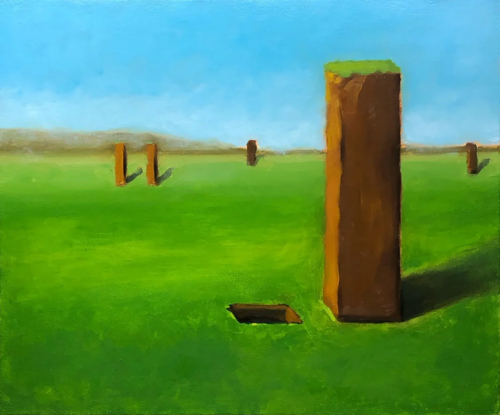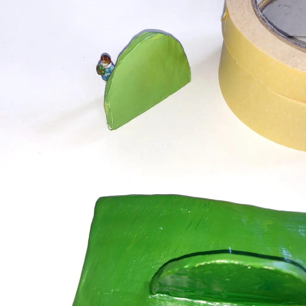 I decided to focus on this project because I had been reflecting for some time on all this illusory imaginary that I had created in my head thanks to my various referential sources and thanks to my previous project called ‘The stone of madness’. The concept was clear to me, although now perhaps I can explain it better. I usually base my works on imaginary spaces that do not belong to any real location or time. In this case, it could be a meadow, a field or even a labyrinth. However, the most faithful answer to the origin of all these images is probably that a meadow with green grass and a blue sky is the closest thing we have in our collective imagination to daydreaming: a cosy place for all those people who want to put their mind in a calm and quiet place.