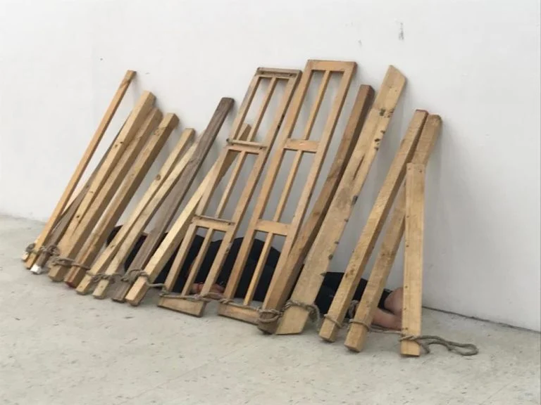 Her creative and constructive media are related to performance and installation. These provide the basis for an interdisciplinary work where the performative appears, either through transformations in the configuration of the piece focusing on a dynamic sensory experience, or a staging in which the body remains almost immobile, acquiring a sculptural character. Using the body as a material, she seeks to develop interactive situations that put its symbolic and historical weight in tension, with the spectacular nature and unpredictability of the action itself in the here and now. Thus, time acquires a significant relevance in her proposals.