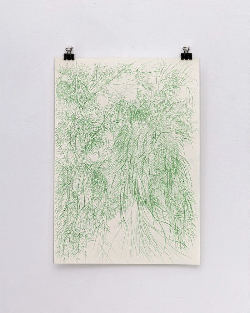 This research project investigates the various physical forms of hanging, such as hanging, dangling, draping, and suspension, through the study of objects and materials like willow trees, chandeliers, fishing lures, and plumb bob levels, etc. I aim to examine the “hanging situation” as a potential state of feminist knowledge and post-humanistic contemplation.