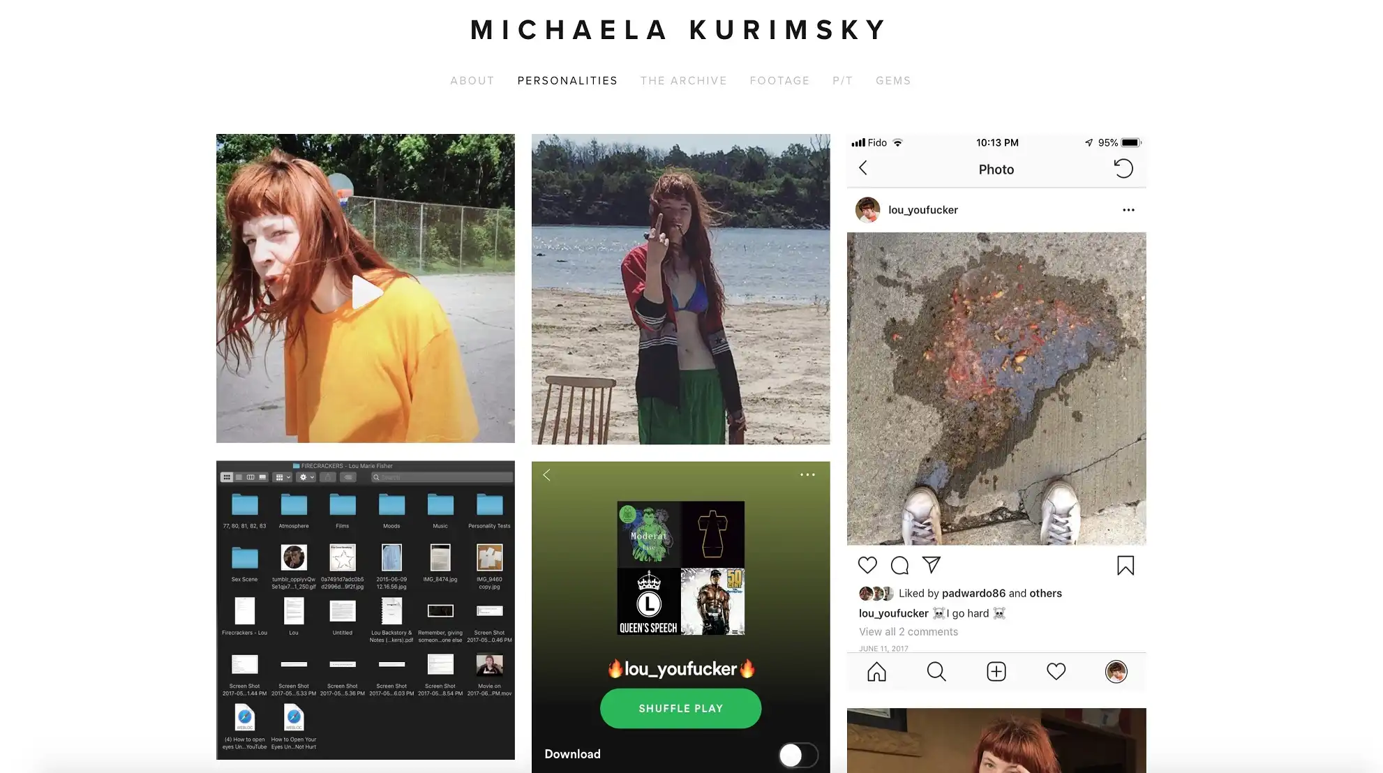 Michaeila’s first on screen acting performance as Lou Marie Fisher was supported by months of preproduction improvisation and character building. Due to that fact, she had the time to curate a past, support it with textural evidence and create triggers that deepened her connection to the world on screen. It had a very serious impact on her personal life as she was unaware that this technique was ‘method’ and endangered her own preliminary sense of self. As a result, she became fascinated with perspective. She was seeing her social life, values, herself through a new filter. She became hyper aware of how our past experiences influence the choices we make. How repeating an action over time can result in an unconscious habit. How we can create emotional bonds with sensory experiences and have it support our self identity.