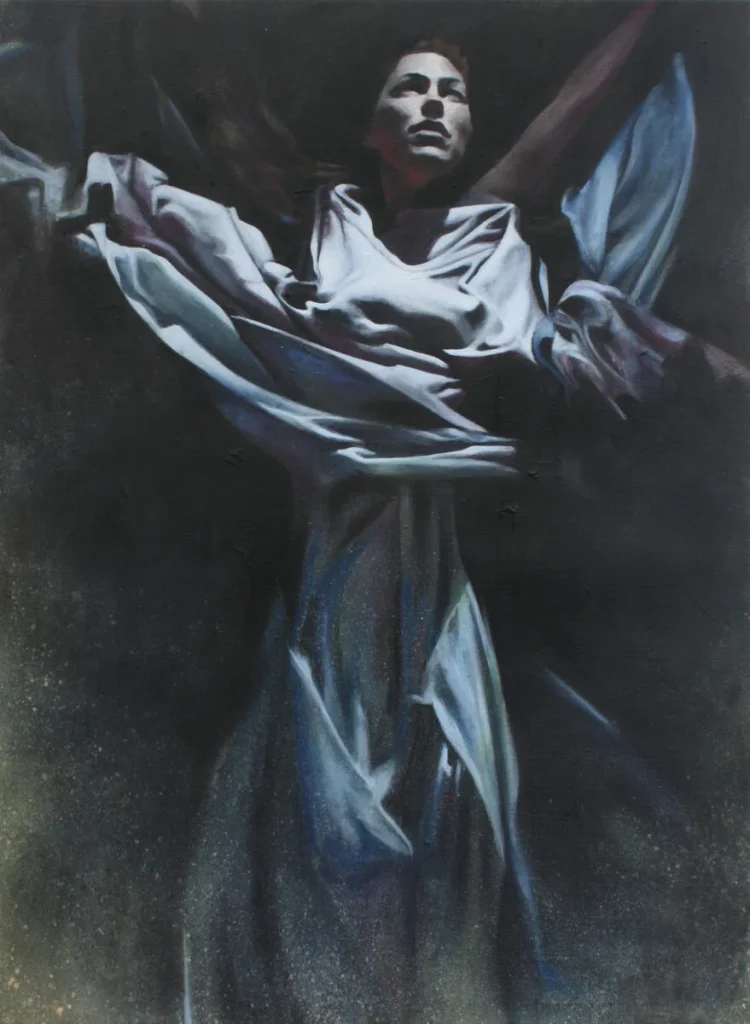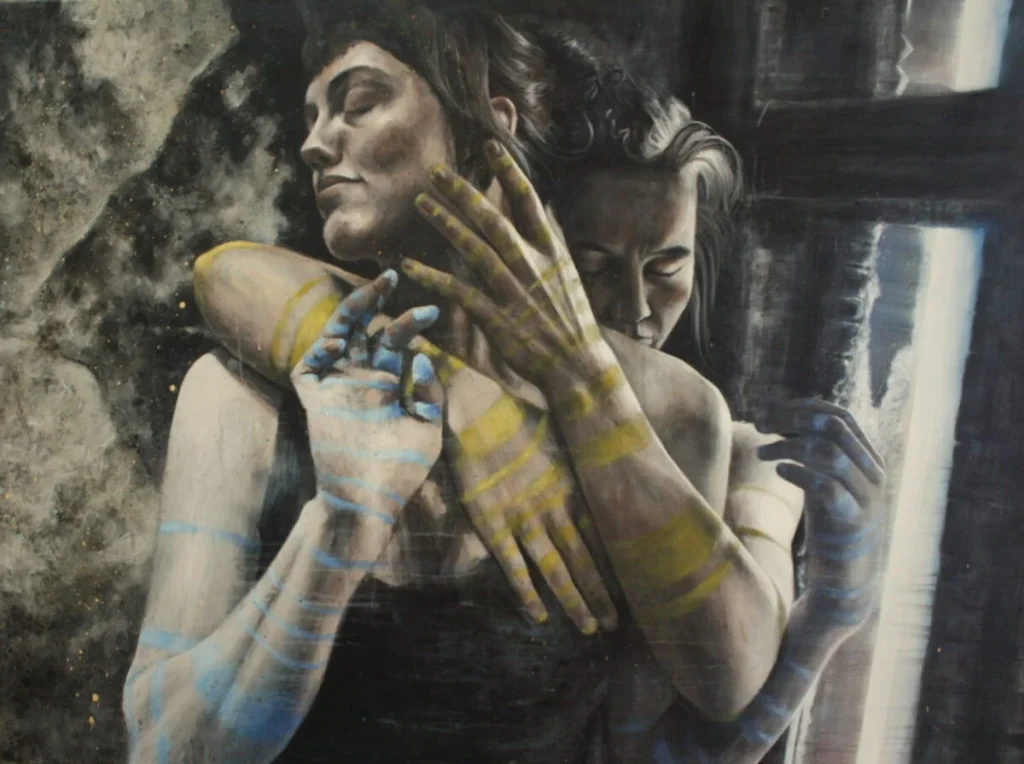 Creating is my constant, it’s how I navigate through life, making my work autobiographical and cyclical in its nature. It’s a sensual and investigative process, led by my experiences and intuition. Fabricating other worldly scenarios, I integrate body art, performance, location and costume. Painting this journey exposes my raw and intimate response; the physical act becoming a performance in itself. People are my main source of my inspiration. I’m fascinated by themes of identity, archetypes and other worlds; my work existing somewhere between what I live and imagine. I consciously seek new situations; creating juxtapositions in, environment, sound, landscape and familiarity, making new found clarity in the unknown. My work explores the realms of the feminine, delving in to the psyche in all its varied and contrasting manifestations. I go through both a transformative and reflective process, in the pursuit to uncover the relationship between self, other and the space between.