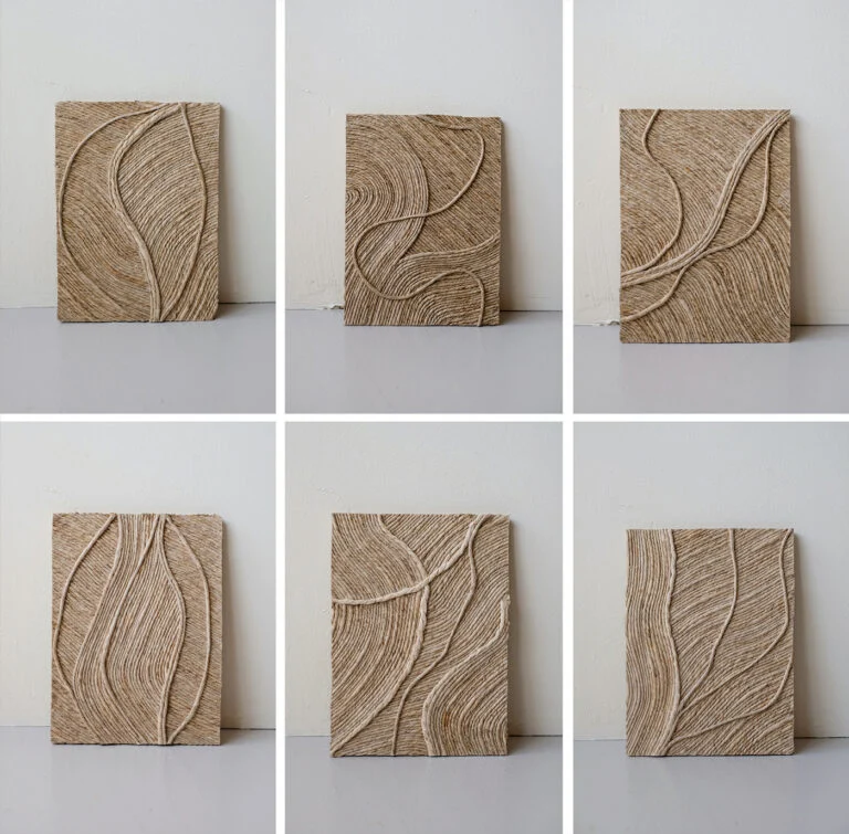 Her installation based work explores different sculptural techniques combining them in the space she is exhibiting in. Materials that are reoccurring in her work are clay, hemp thread and paper. She is drawn to materials that have a sense of resistance and are easily altered or cast into a shape. Materials that are connected to nature in some way or carry a narrative of their own.