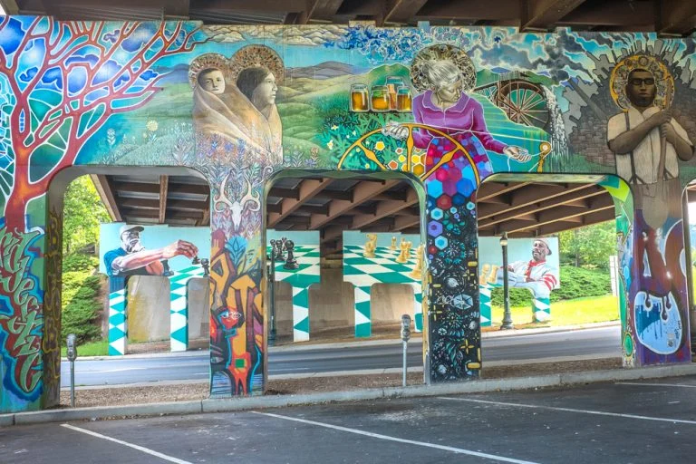 - 2008 Lexington Ave Gateway, Interstate 240 Underpass Mural, Asheville Mural Project, North Carolina, Department of Transportation, Asheville County Commission & Office of Economic Development