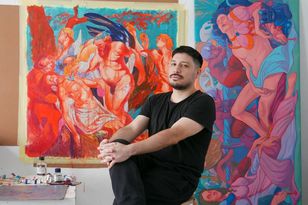 I like to work a lot with a pop language. You can easily tell this by looking at my colors, my use of caricature and memes. I’m a son of my time. I live in a postmodern world where everything is achievable at the same distance. A meme and a master’s painting can have a dialogue at the same time. And I like to say that, in my painting, both things can be at the same level. If I am lucky, I can suddenly achieve a new connection that makes sense. When that happens, I’m happy.