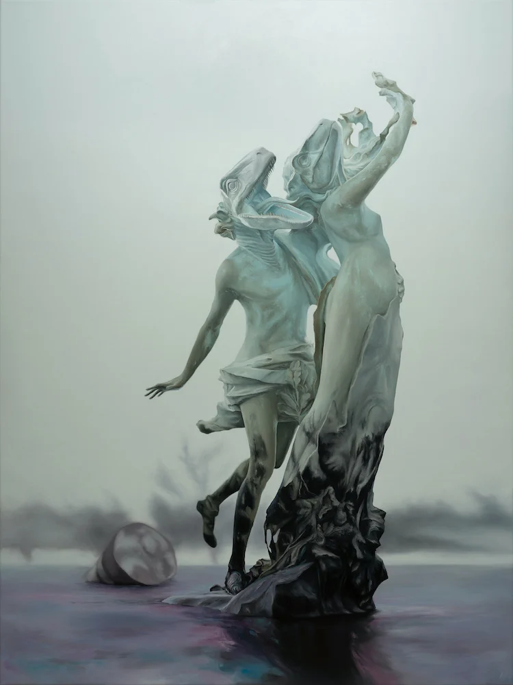 Right now, I like to start all of my works from an image that is recognizable to some degree, it could be something that people have seen a thousand times. And I like to change it and make it my own. And in that way, I try to create a dialogue between the original painting and what that subject can mean in current times.