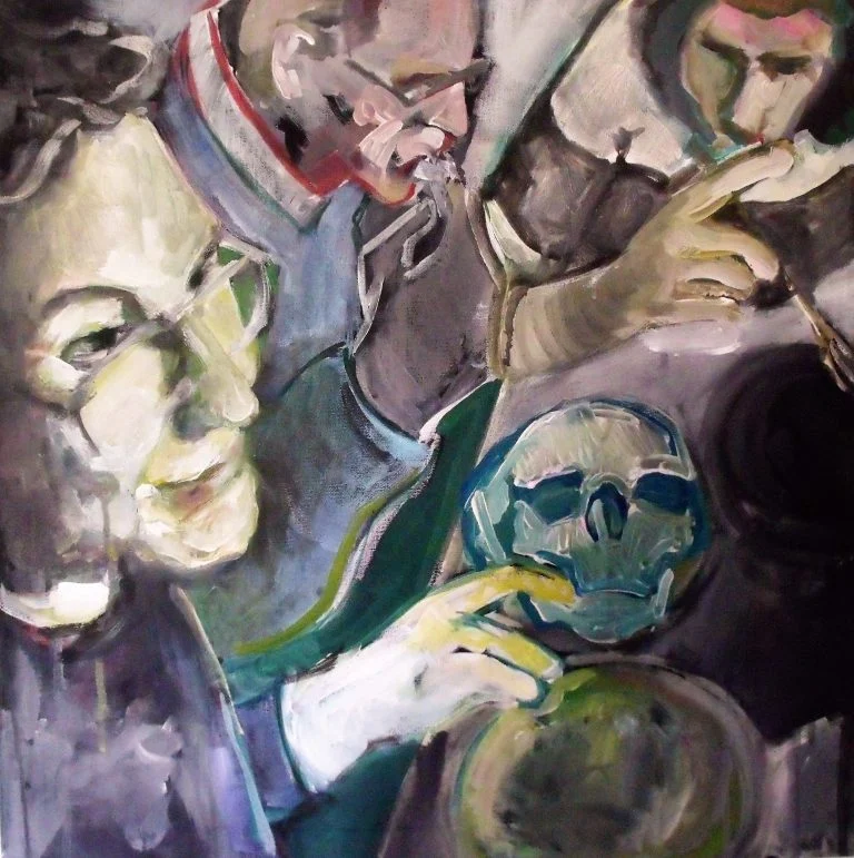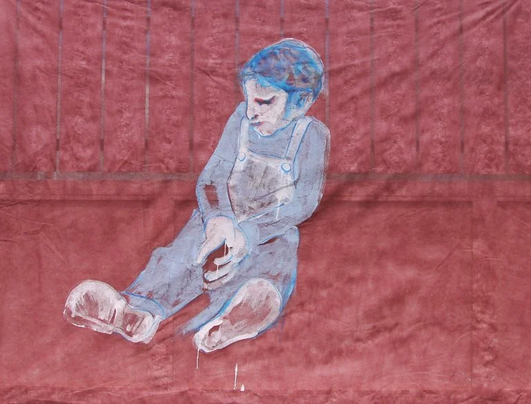 To whisper. Not shout. To suggest. Not determine. To ask – without expecting finite answers. To paint images which the viewer can relate to from their personal, ever-changing point of view. All this drives me when I am creating. The topics that arise in my art are related to the daily actions we take in society, which in turn, dictates its rules upon us. It begins with family relationships and dives into the female image in patriarchal society, identity and gender perception. Things which are swept down the carpet of the family dinner, reappear in my works on the table itself. My inspiration often comes from films, children’s stories, costume catalogs, old photos, social media posts, and more. I work with diverse surfaces such as canvas, cloth, cardboard, tablecloths, old books and plastics applying oil paints, acrylic, charcoal, colored markers and varnish.