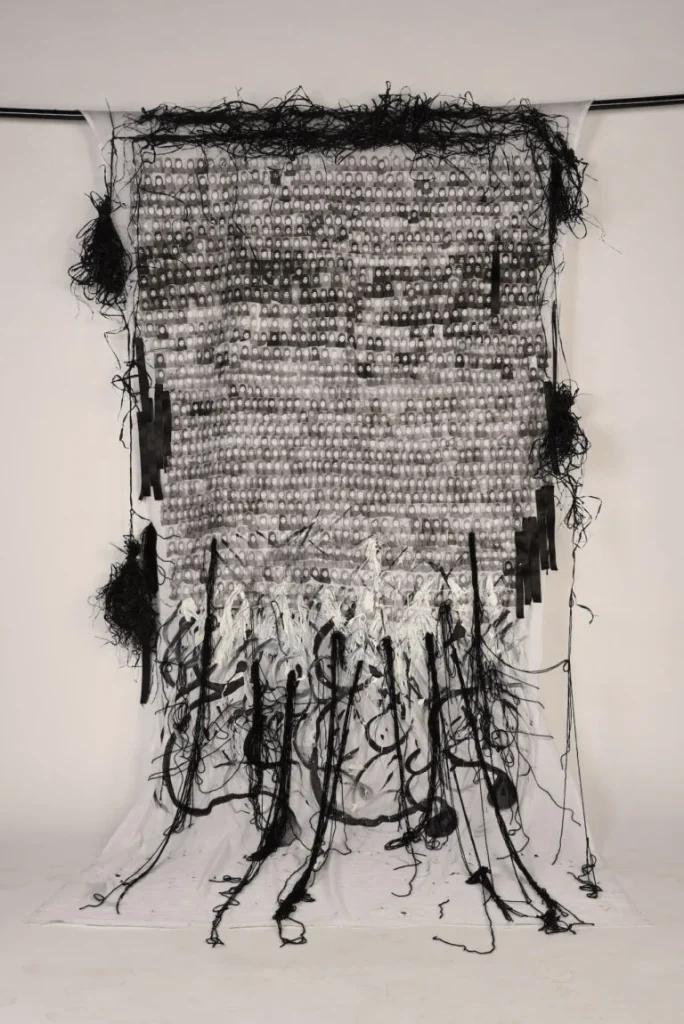 Over the past couple of years Rawan has utilised her passion and experiences to inform her works, and has developed a specialism in ‘Screen Printing’ through the use of various mixed media objects and fabrics. Rawan has a fascination in the ways fabrics act, and is popularly known to utilise silk, cotton and scrim to develop her pieces of art and utilises these fabrics, and the addition of printing to create her large-scale multimedia installations pieces.