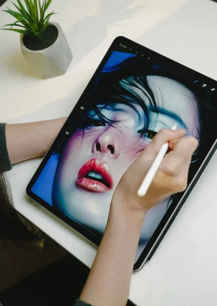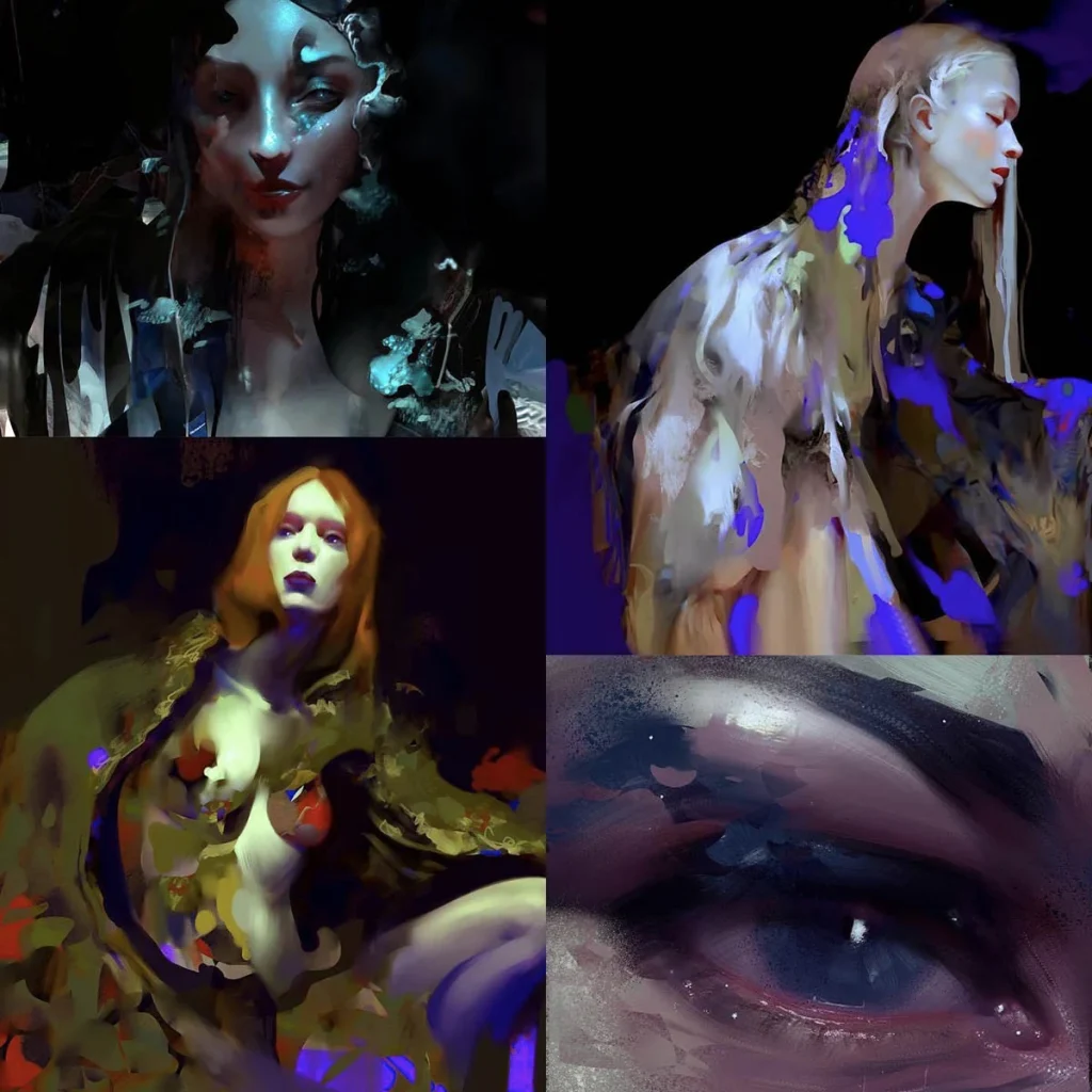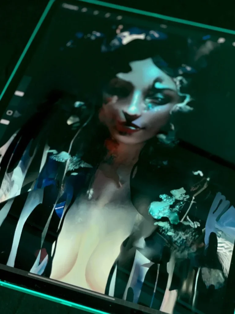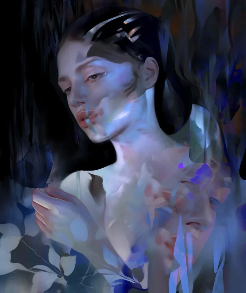 In my artistic practice, alongside the use of digital technologies, I strive to preserve the spirit of fine arts. Therefore, I employ traditional drawing techniques, as if I were painting on canvas, but I work with digital painting. Typically, it involves a female figure assembled from fragments, resembling a mosaic in deep shades or shadows. By employing a fragmentary technique, I allow the portraits to subtly change, exploring vulnerability and the unexplored. My goal is to create deconstructed, illusory images aimed at full acceptance by the viewer.