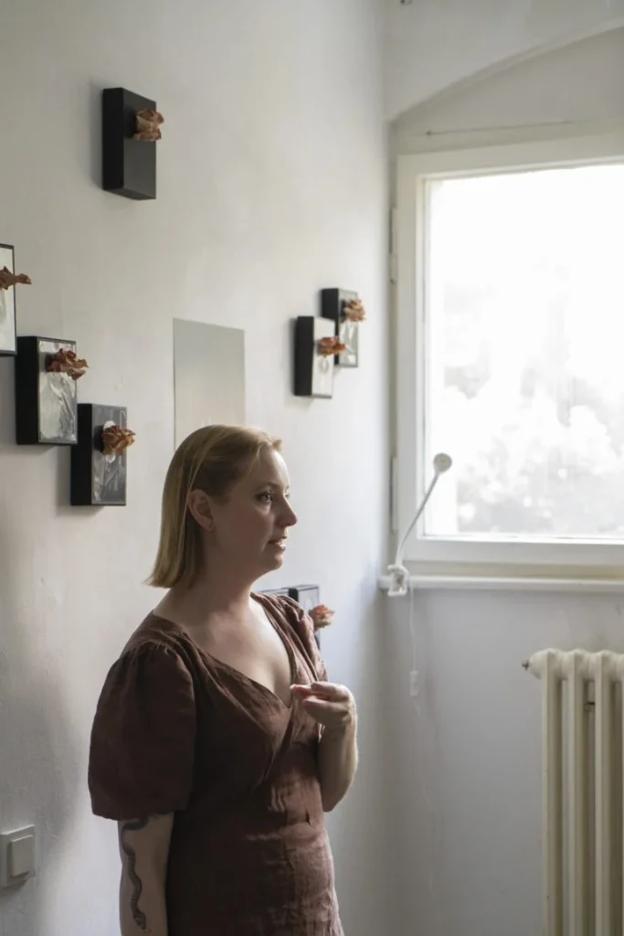 During the three months at GlogauAIR, Sophie intends to explore the connection of mycelium and human connection in a social and historical context. Interested in the organisms power of transformative inspiration and deep-time sense of belonging, this new work intends to capture the feminine knowledge of the fungi. In Western society structures, historically women have been custodians of ecological knowledge through foraging practices. However, many voices were silenced from formal participation in Science and were oen dangerously cast aside as ‘witchcra’. This project aims to reclaim this space using the fruiting bodies of the mycelium cultivated at GlogauAIR through archive images of male mycologists.