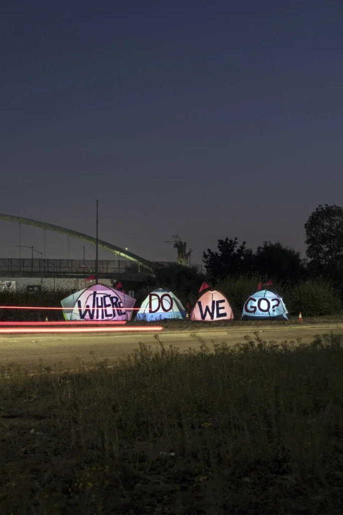 - January 2017 – ongoing. Homeless Shadows, series of illuminated tent installations created in collaboration with residents of homeless camps in the Bay Area. This project received a grant from the Awesome Foundation.