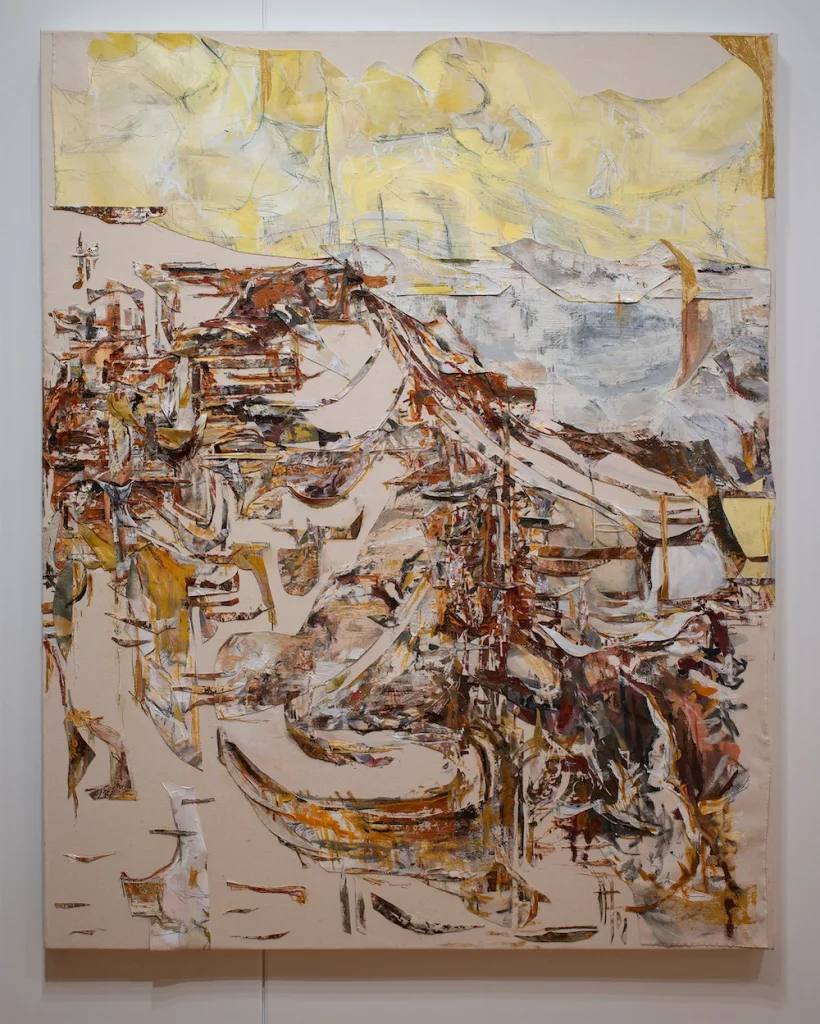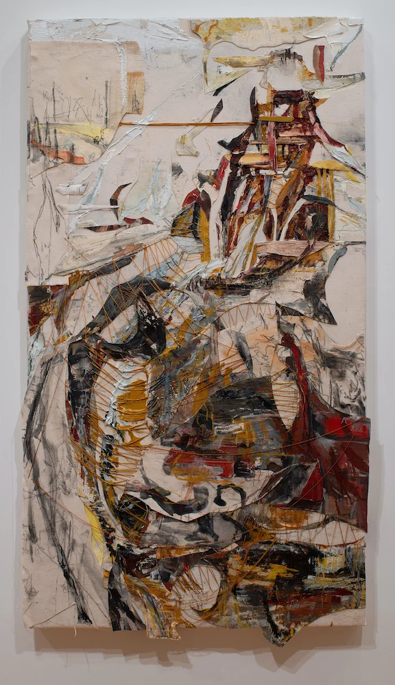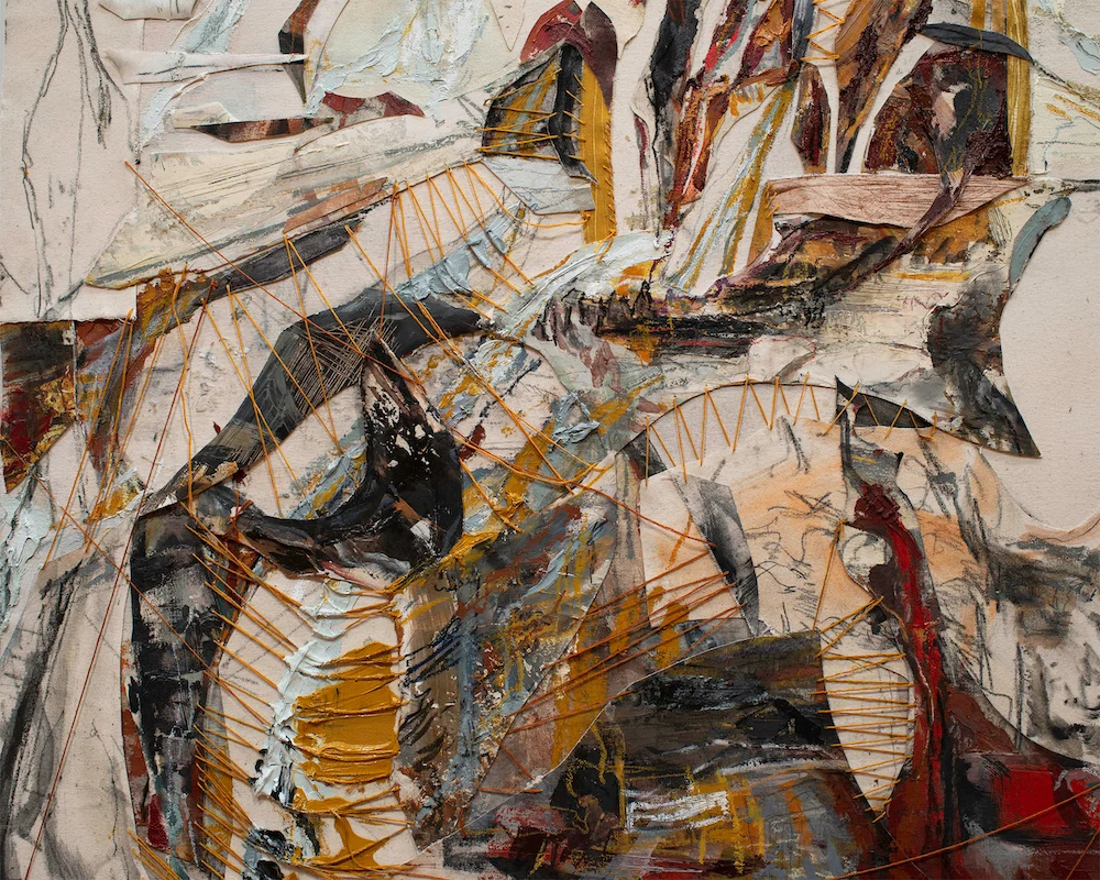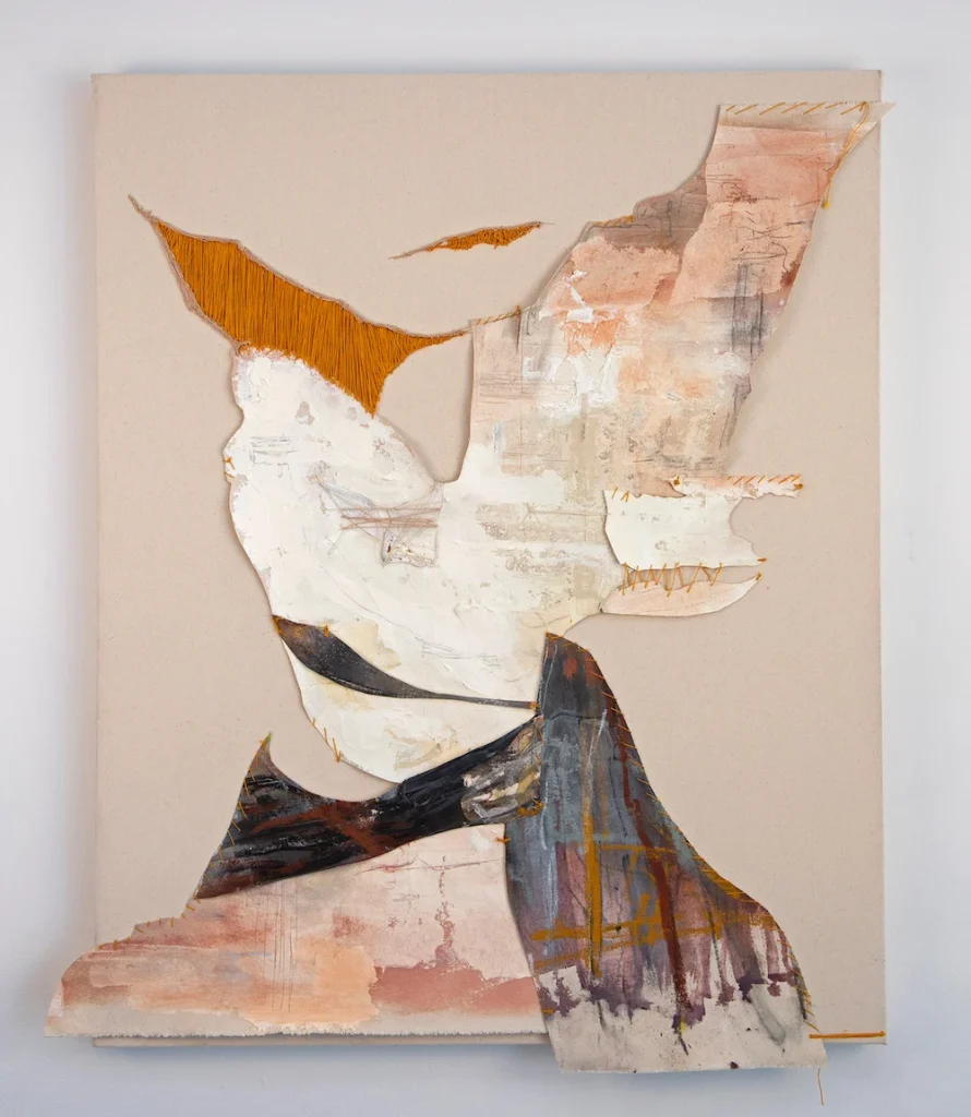 During my residency at GlogauAIR, I plan to create painted collages that respond to the architectural surfaces and landscapes I encounter in Germany. In 2020, I began a series of stitched paintings interpreting the site of the former Lodz Ghetto in Nazi-occupied Poland, where my grandmother lived from 1940-44. In Berlin, my goals are to expand this project by visiting official and unofficial sites of remembrance related to World War II and the Holocaust. I am interested in how the memory of WWII is embedded within the built environment of Berlin and other German cities that were devastated by Allied bombing.