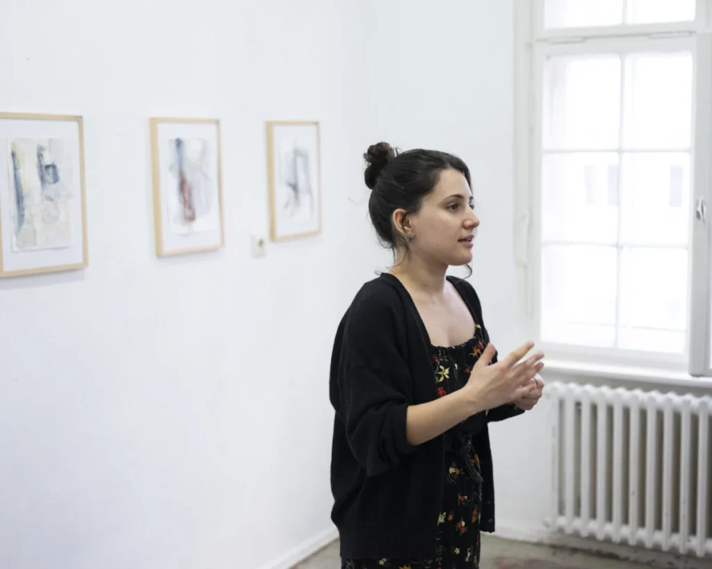 Absolutely. I am clearly influenced by the history and architecture of Berlin and could not make this work in a different location. I also love the light that comes through my large windows at GlogauAIR and am influenced by the colors I see outside when I am working. My use of materials has also expanded at GlogauAIR. I set some material constraints for myself when I arrived due to the space and transportation needs. I decided to use water-based paints and drawings materials on a small scale, instead of my usual oil paint on large canvases. While these material choices began out of practical concerns, they have opened so many new and exciting material possibilities in my work that lend well to the content I am exploring. For example, I am really excited about how the thread interacts with rigid paper, as opposed to fabric, and the presence it has on a small scale.