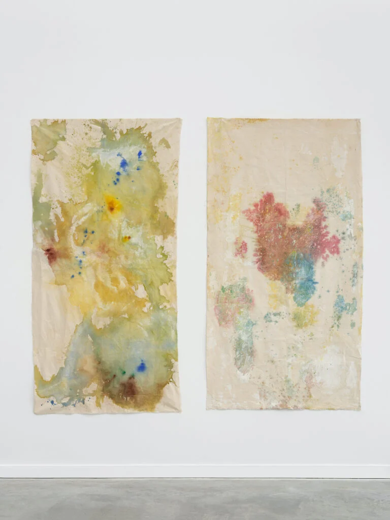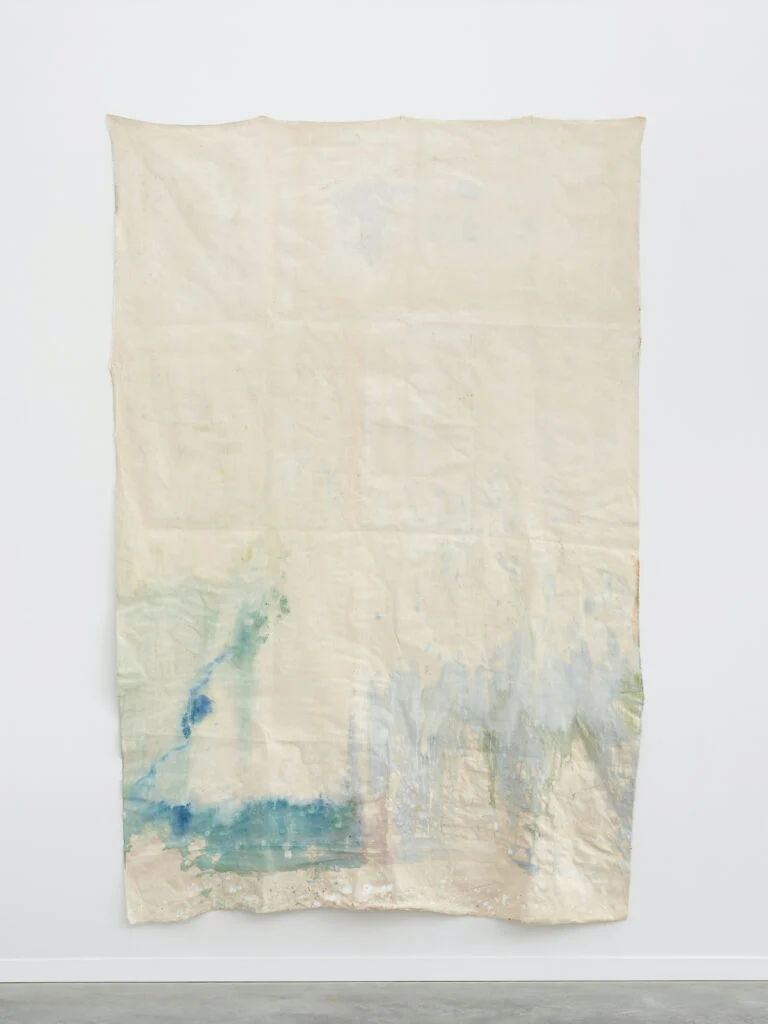 My paintings transcend the frame, molding themselves into organic, bulbous forms of unstretched canvas. They expose their own insides and become waste receptacles of discarded pigment, transmitting water like a membrane in osmosis. What I exhibit is the imprint of transmitted paint from one canvas to another, from one side to the other, and the trace of what has been painted in the past and grows into a form in the present. Like water, my works are unfixed and constantly morphing beyond formal interpretation.