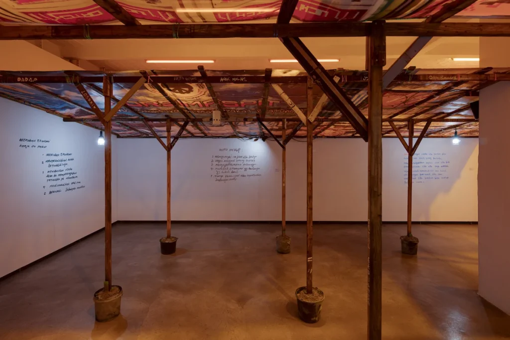 She: We have been using the name “Working Hard” since 2015, and we graduated from our sculpture degree in 2016. After our studies, we had a very special experience of a residency in Indonesia in 2017, which shaped our practice. We went to Yogyakarta, a city in Indonesia and we did the residency with LIFEPATCH. They are one of the groups that also participated in Documenta 15 last year. We worked with the Taiwanese group OCAC which invited different types of artists to go there and participate in this project. This residency lasted for one and a half months. We were very welcomed by the local community to participate in their activities, and we got so inspired by the environment. It was a very special residency as we weren’t just working on our own processes, our own practices, but there was a real focus on collaboration, and working together with artists and people living there.