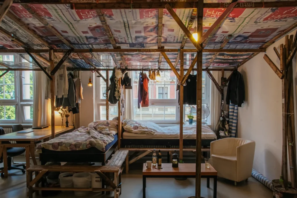 Boy: The people of the residency had just moved to a new place, so we needed to talk about how to design this space, because the space is empty. We created stairs, and a pool, for people to meet there and spend time together. We made many workshops there.