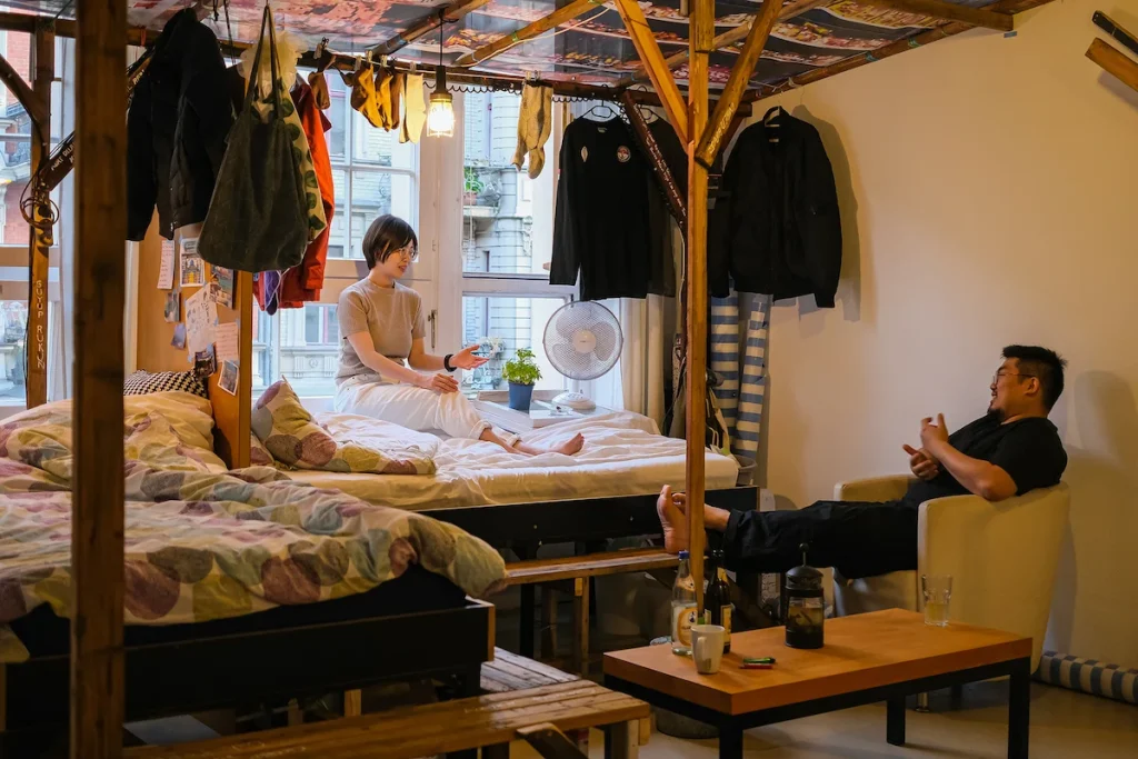 She: Doing our last residency in Berlin, in Künstlerhaus Bethanien, we met another artist who participated in the GlogauAIR residency program before. He told us that, in his experience, GlogauAIR felt like an art village, with more opportunities for connections than in Bethanien. Bethanien is way bigger, and everyone has their own kitchen in their studio, so people don’t use the common space so much to have tea or talk together. We still made lots of friends there, but we’ve been told GlogauAIR felt warmer, more like a collective. We also like that everyone starts at the same time, and live together for at least three months.